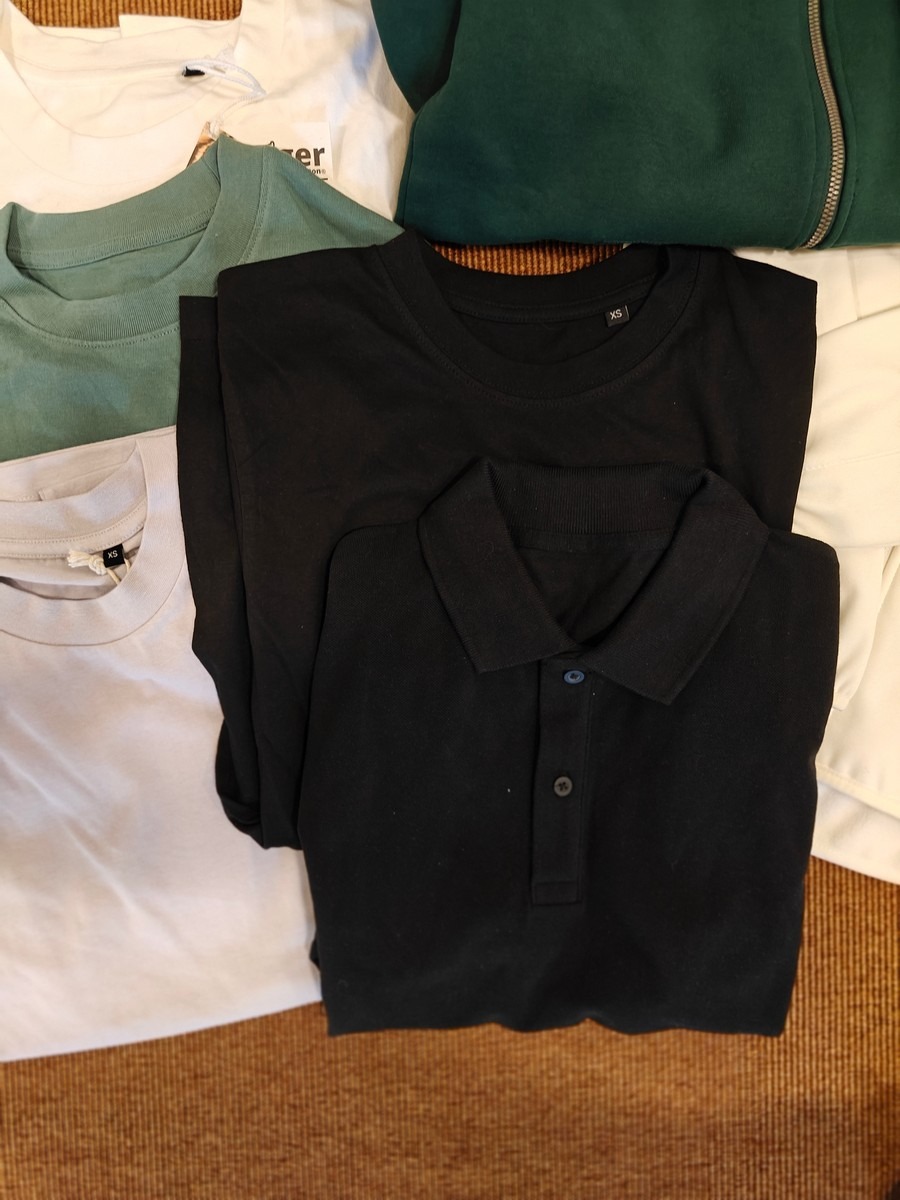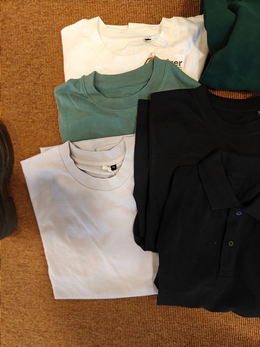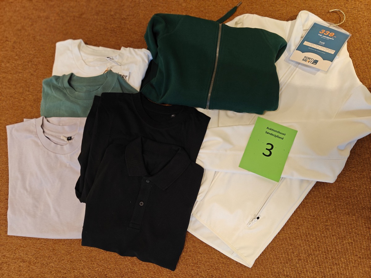 Herre basic tøj str. XS. Shoftshell jakke, hoodie med lynlås, polo, 4 stk. t-shirts. Dansk kvalitet. Oprydning for virksomhed. Ubrugt.