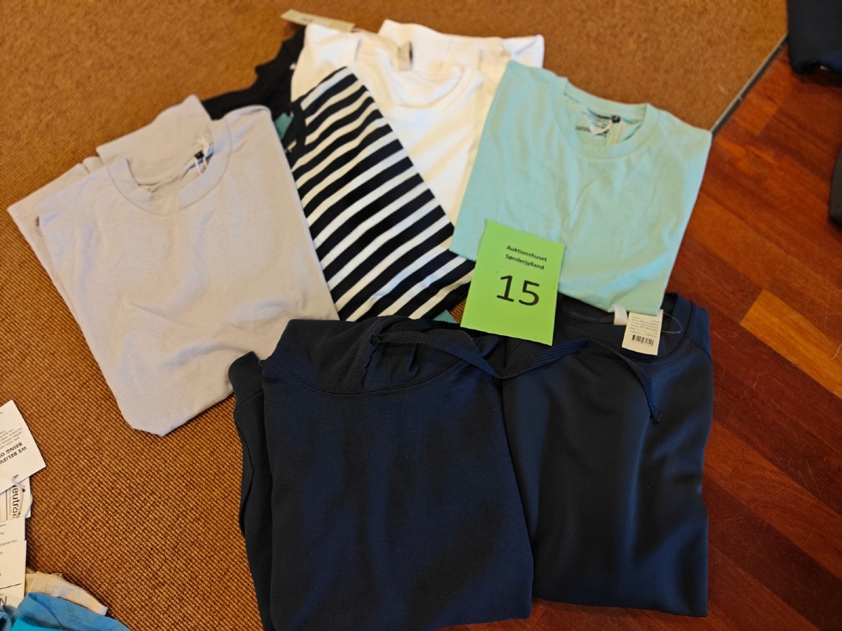 Herre basic tøj str. M. Hoodie, sweatshirt, 7 t-shirts. Dansk kvalitet. Oprydning for virksomhed. Ubrugt.