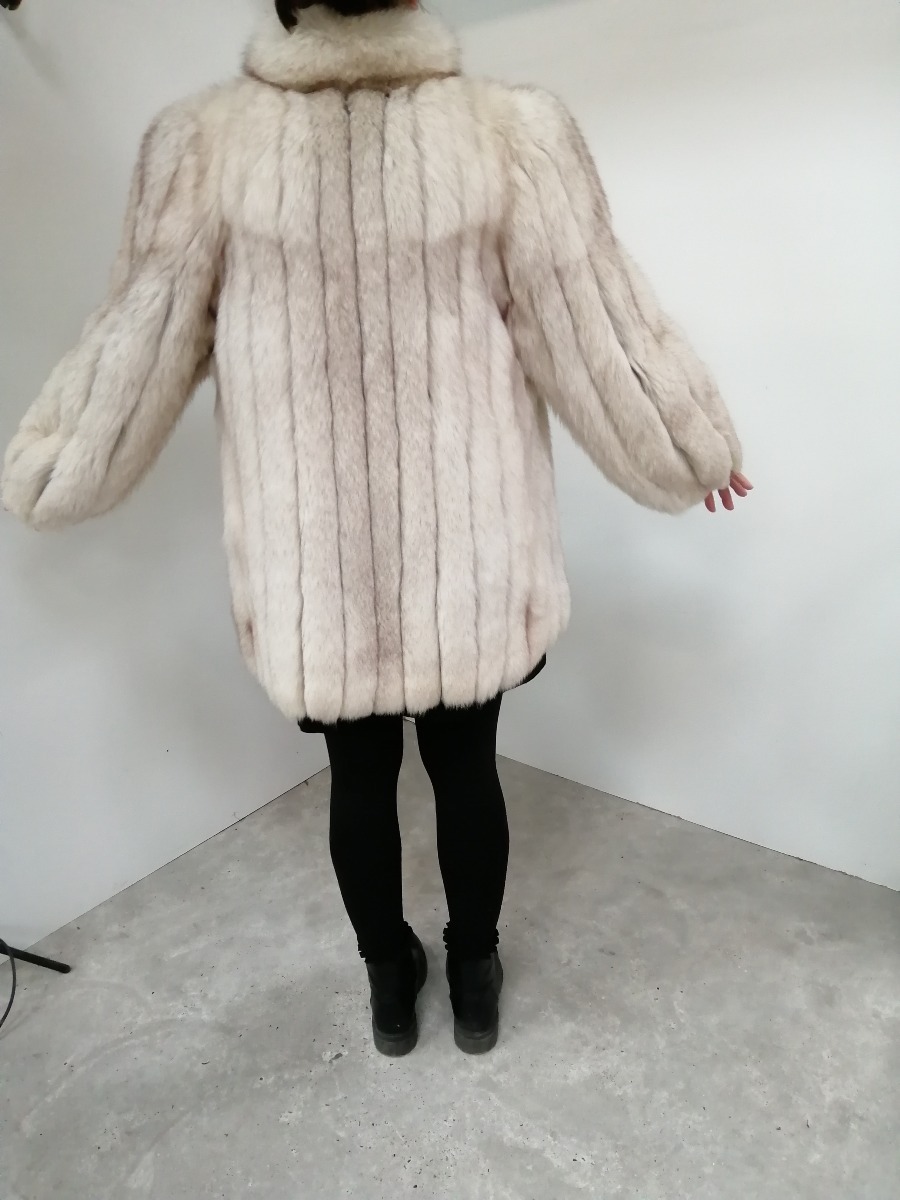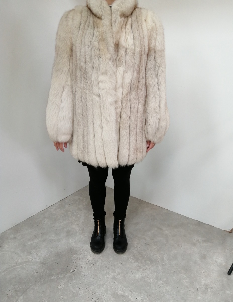 Pels af sølvræv. (Fotomodellen er en str. M). Brugt, men meget pæn stand.