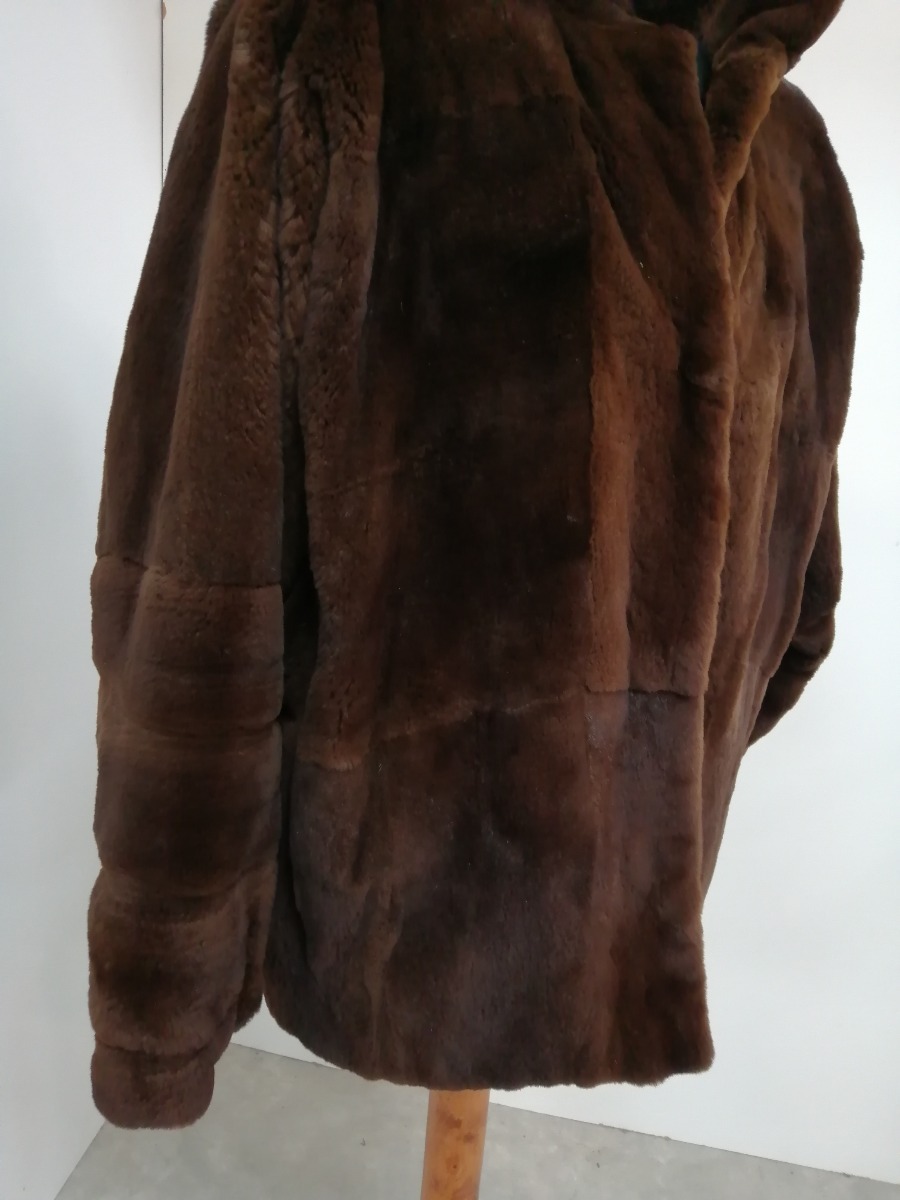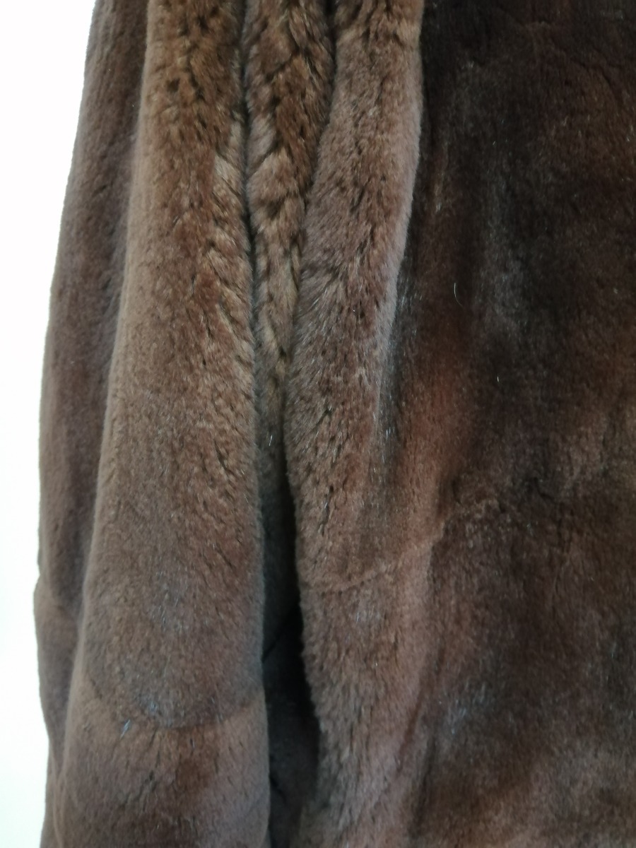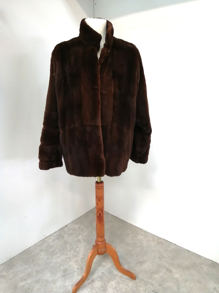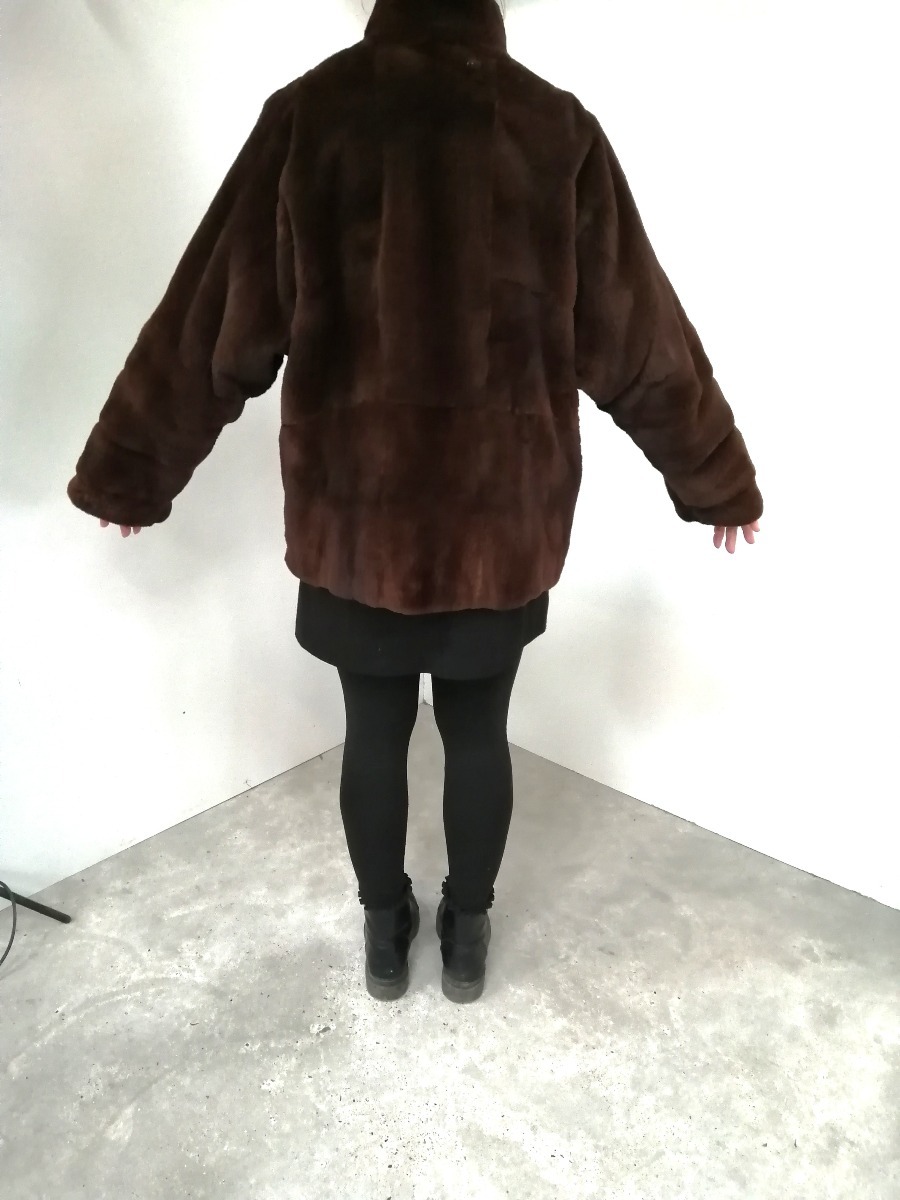 Pels af klippet mink (Fotomodellen er en str. M). Brugt, men meget pæn stand.