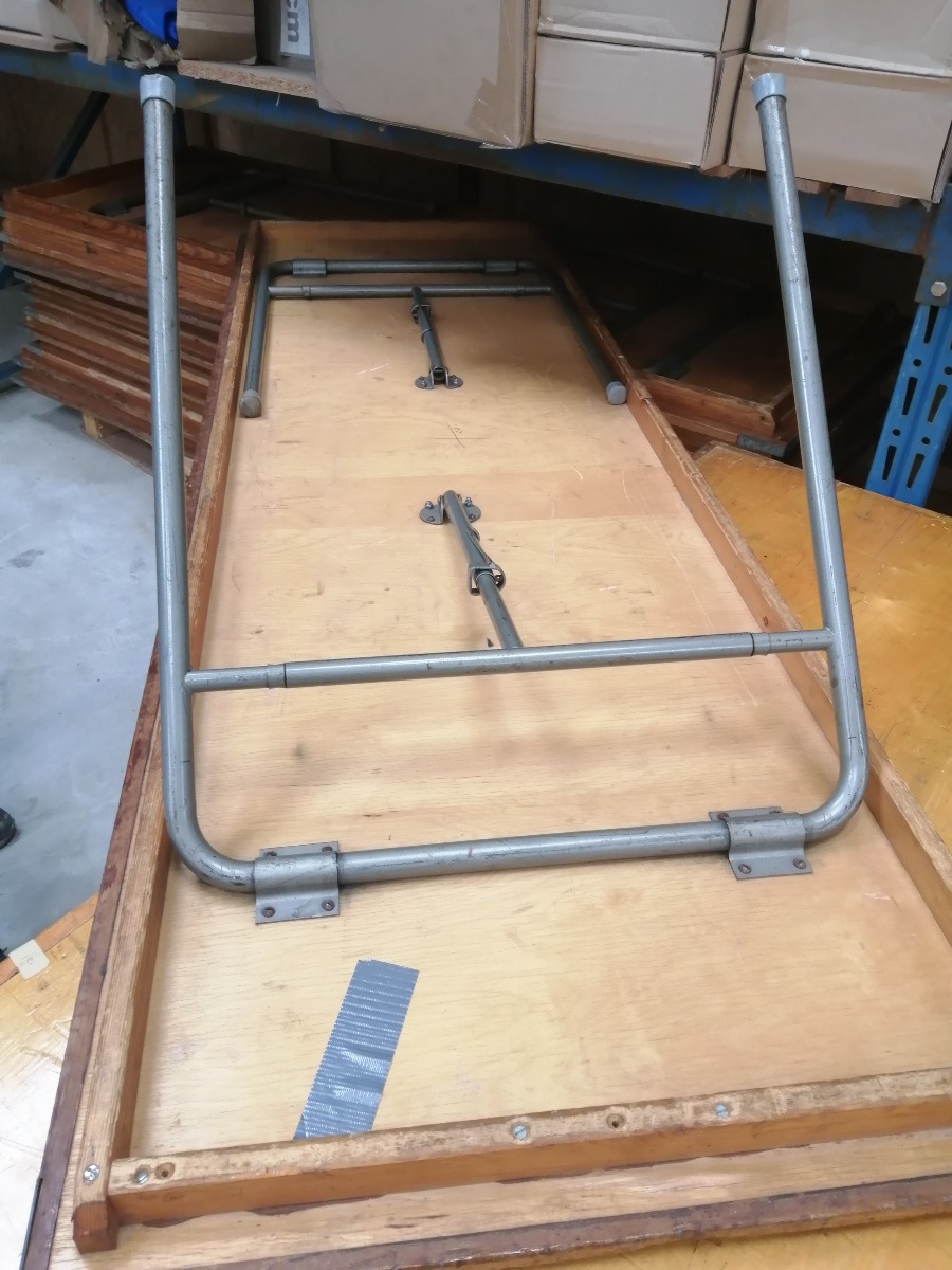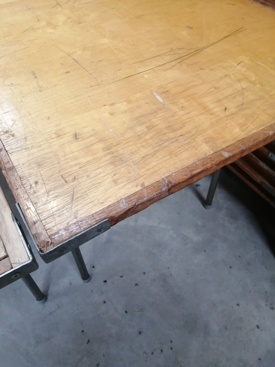 4 stk. træ klapborde - stabile borde med mange års historie. De har godt med patina, slid, brugsspor, som tilsammen giver dem et fedt look. De skal evt. lige slibes enkelte steder. Hjørne-kanter i jern kan mangle på nogle af bordene. De måler fra 201-202 cm i længden og 71-72 cm i bredden. H: 73,5 cm. Benene er med låse-funktion.