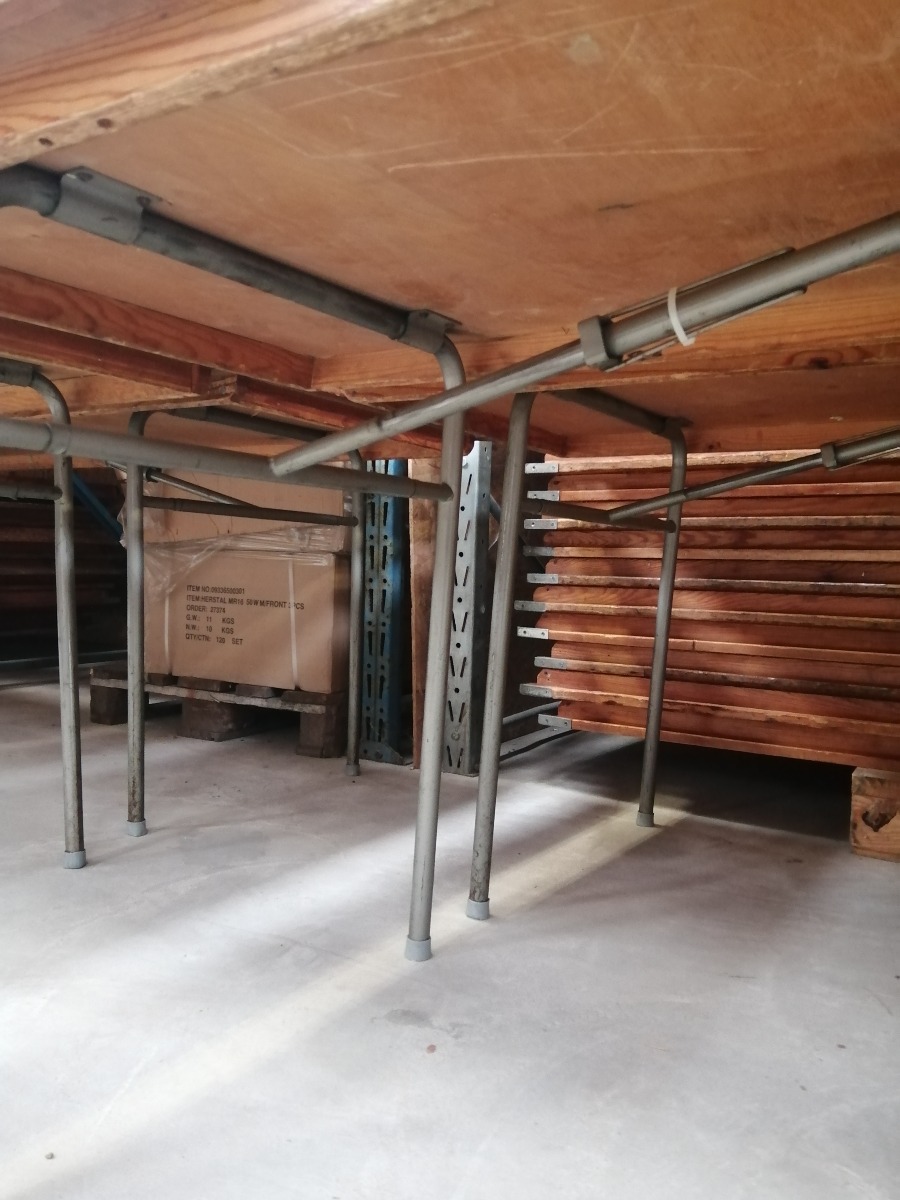 4 stk. træ klapborde - stabile borde med mange års historie. De har godt med patina, slid, brugsspor, som tilsammen giver dem et fedt look. De skal evt. lige slibes enkelte steder. Hjørne-kanter i jern kan mangle på nogle af bordene. De måler fra 201-202 cm i længden og 71-72 cm i bredden. H: 73,5 cm. Benene er med låse-funktion.