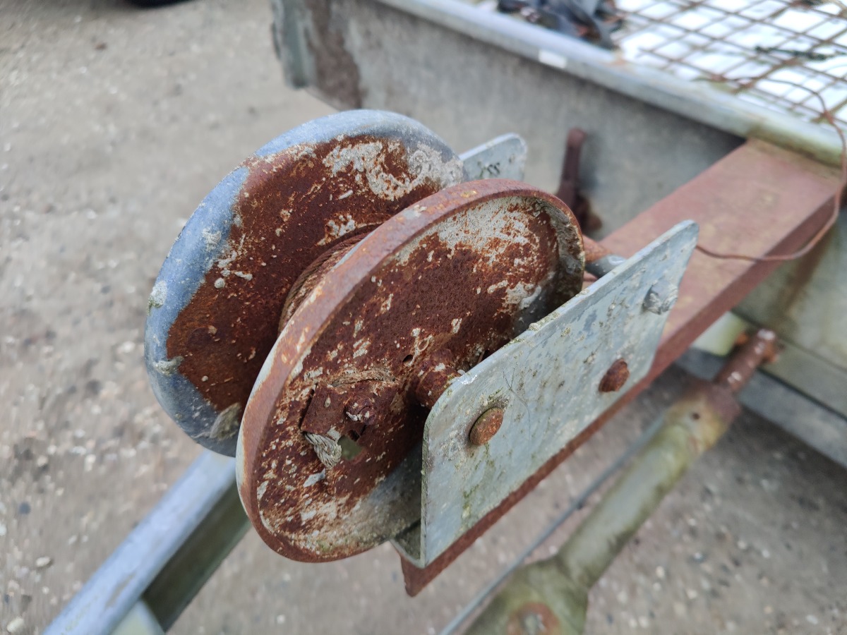 Brenderup boogietrailer, type 40K. Tilladt last 1.500 kg. Trænger til eftersyn og en kærlig hånd. Traileren står uden plader og regi attest medfølger måske. Slidt og brugt