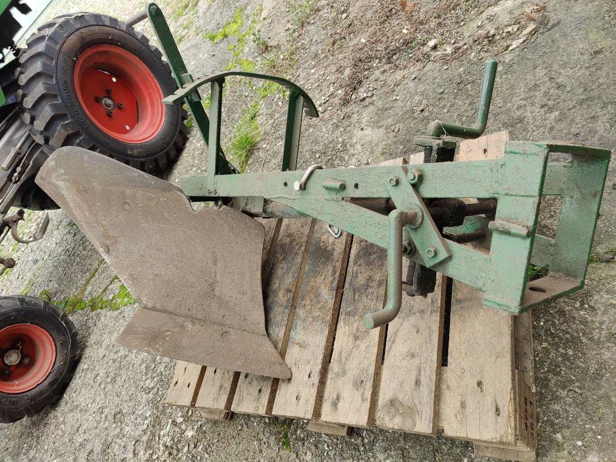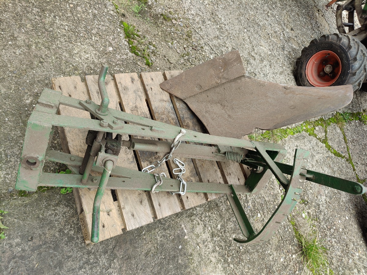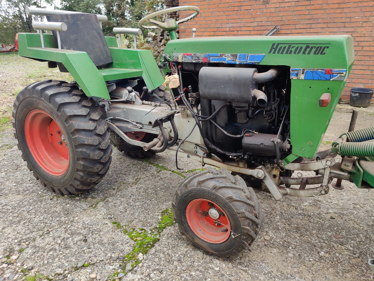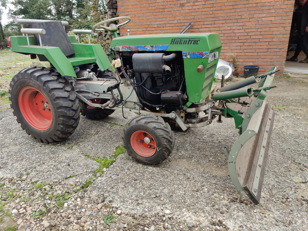 Hakotrac traktor med dozerblad og 1 furet plov. Farymann Dielsel, Type B, Nr. 20 B 0676. Den er uden batteri, men kan starte med batteri. Den er perfekt til vin og køkkenhaver.