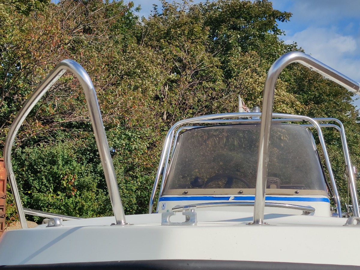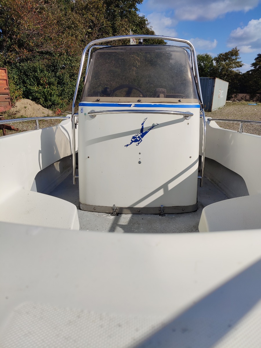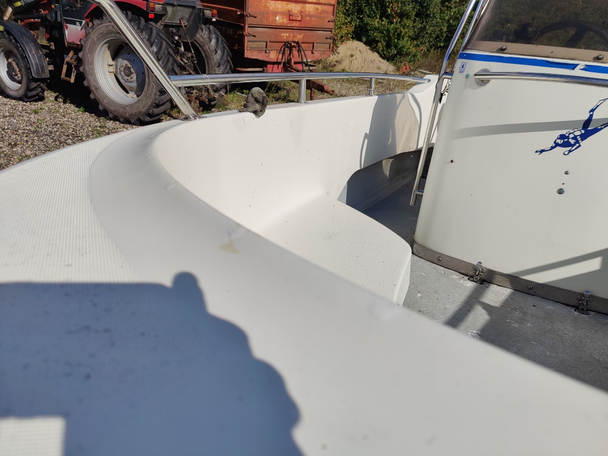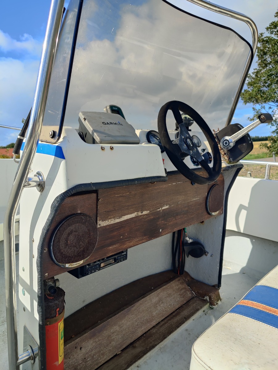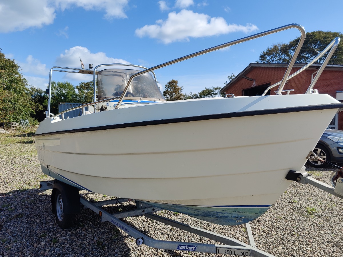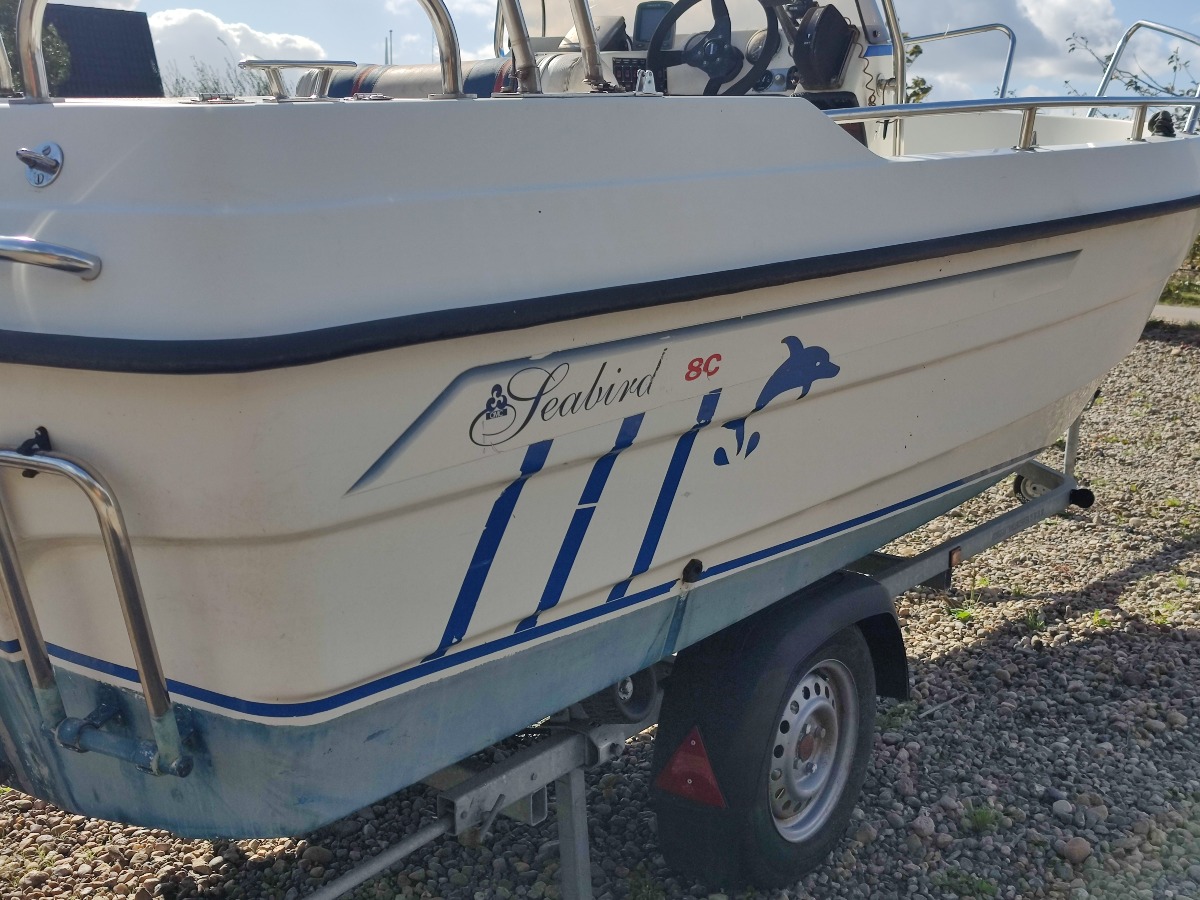 Ryds 485 DL - Seabird 48 C båd. Med EVINRUDE 70 HH, 2 takts motor. Båden er med Garmin kort plotter, kompas og diverse udstyr. Kongeaa variant bådtrailer medfølger - T: 750 kg, L: 600. Med spil. Båden har periodisk fejl på trim. Brugt.