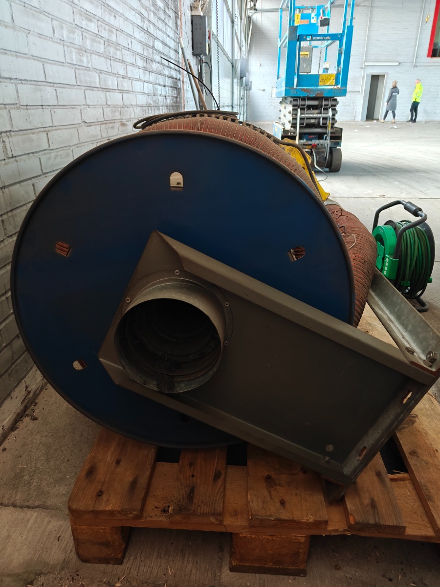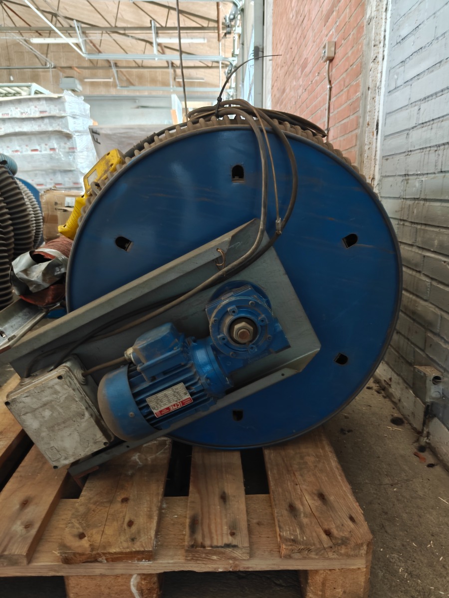 Slangeoprulle/udsugning med elektrisk oprul., en del af slangen er skiftet, er afmonteret, i go stand