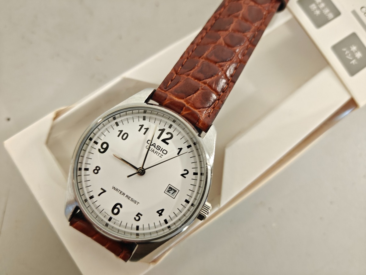 Casio quartz herreur med stålkasse og krokopræget rem. Minimale brugsspor.