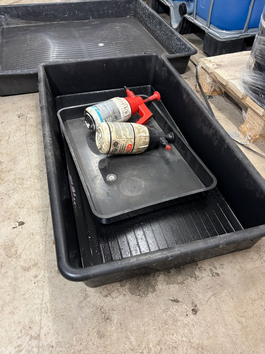 3 stk. Oliespild kar, mm. Største måler : 100 x 100 cm.