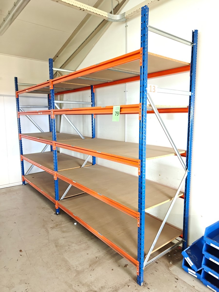Pallereol med 2 fag. Hver fag måler ca: 180 x 80 x 250 cm. Uden indhold. Køber skal selv afmontere.