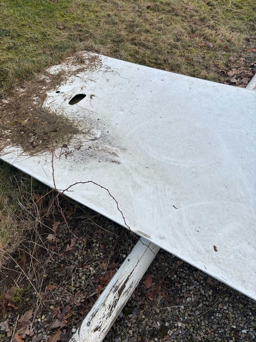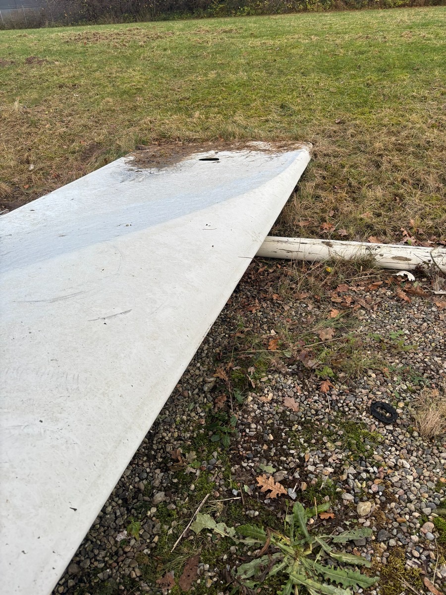 Stort pylon skilt. Måler ca. 5 meter. Er nedtaget og lagt i et stykke tid. Stand ukendt.