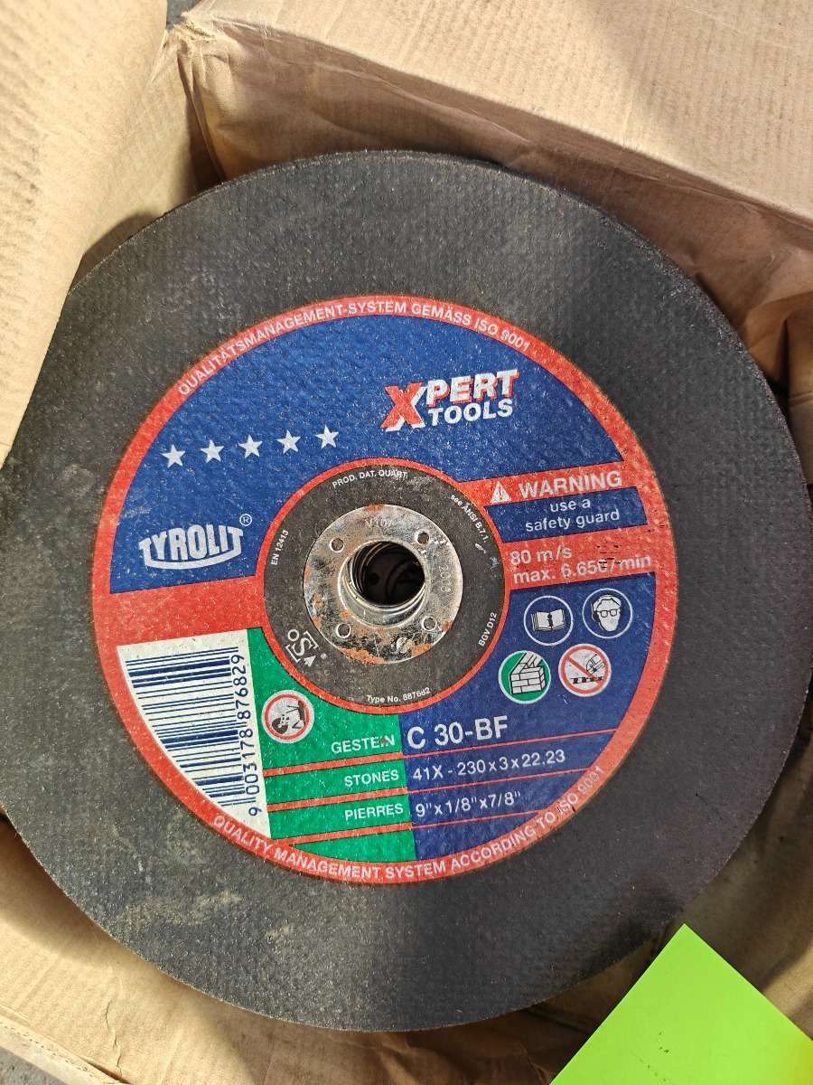 Parti skiver til vinkelsliber skære/slibeskiver bla. 22 stk skæreskiver til sten 230 mm