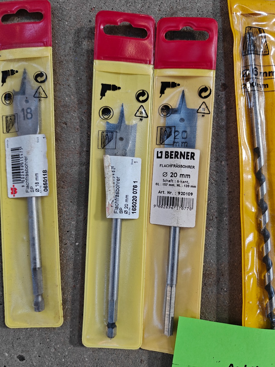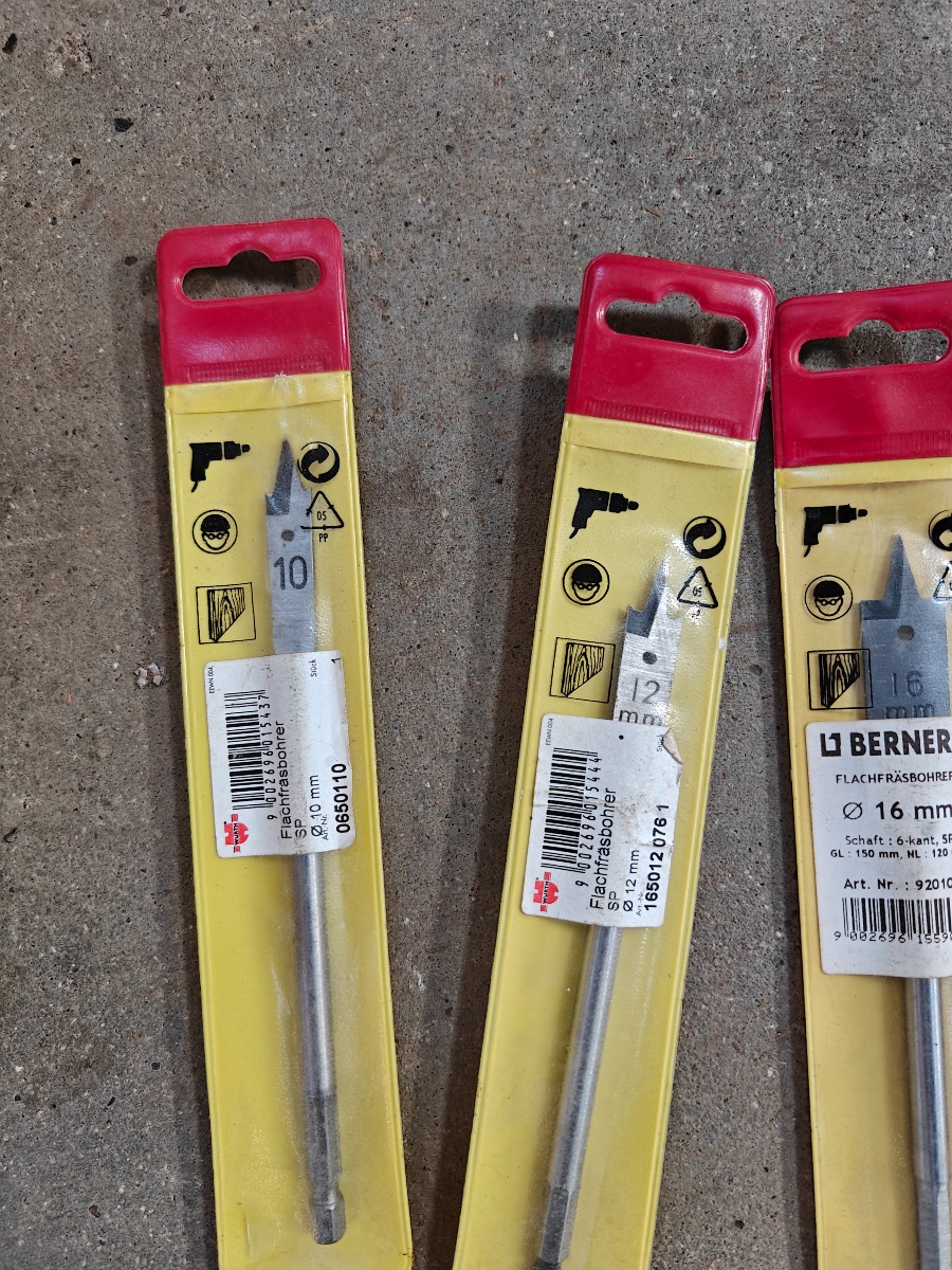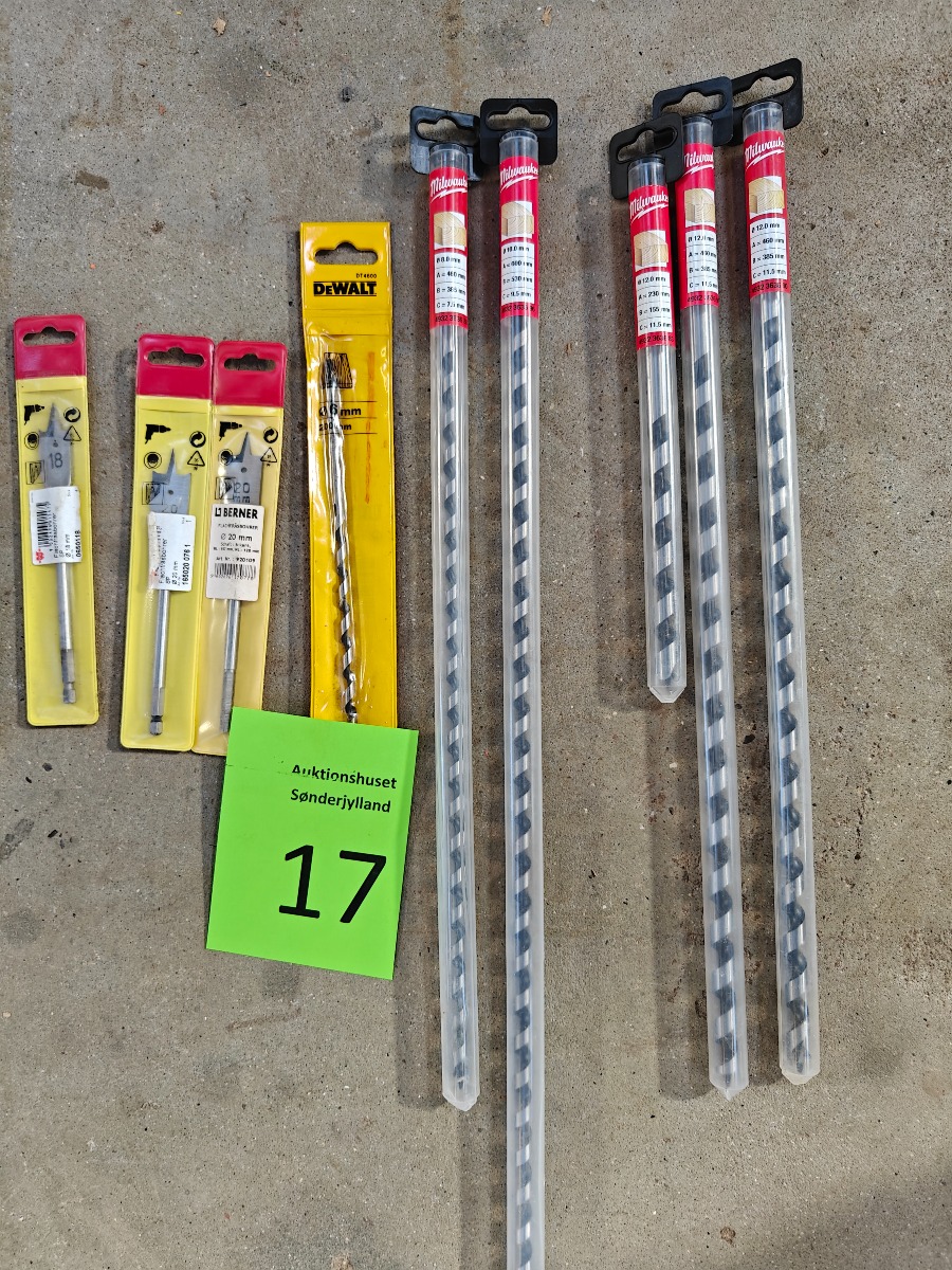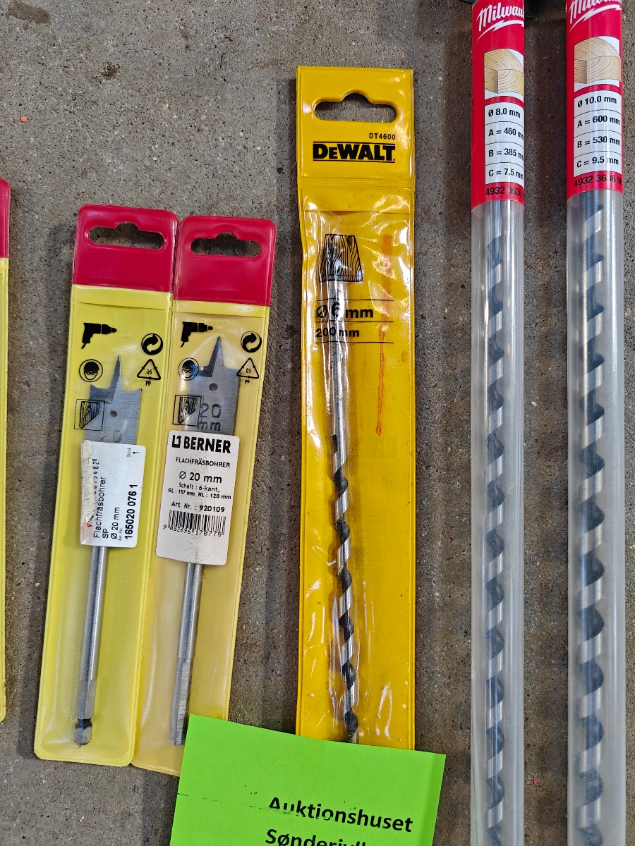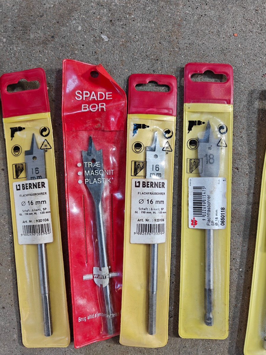 spadebor 2 stk 20 mm, 1 stk 18 mm, 3 stk 16 mm, 1 stk 12 mm, 1 stk 10 mm ubrugte