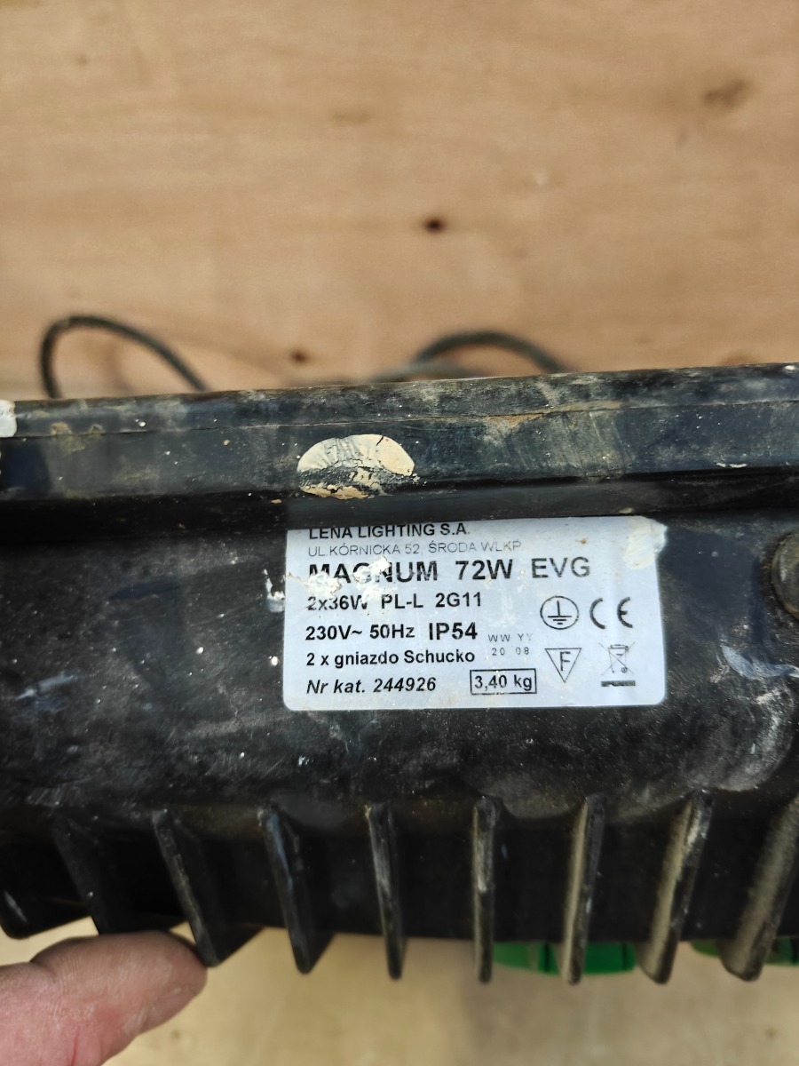 Arbejdslampe model Magnum72w EVG med 2 220v udtag på bagsiden. ok stand.