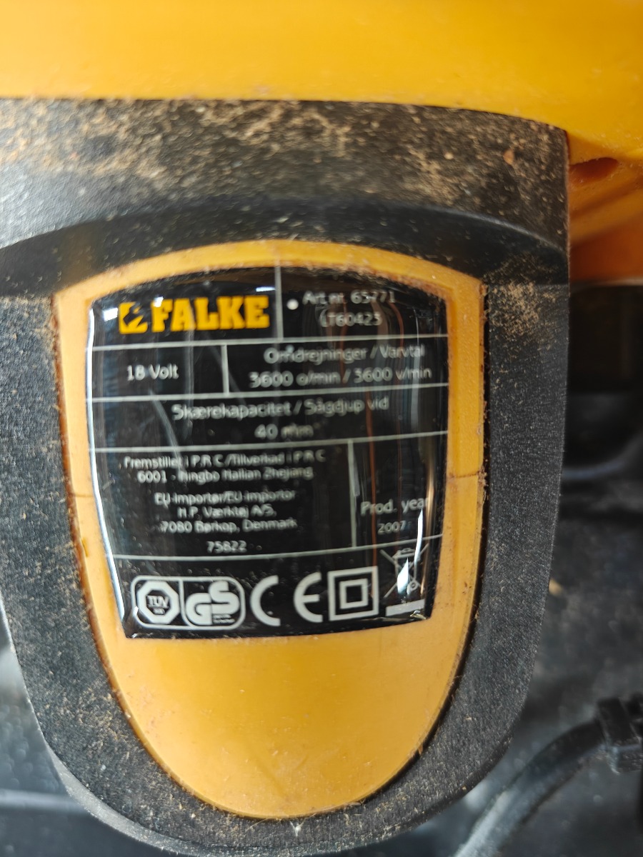 Falke akku dyksav med batteri og oplader, max skæredybde 40 mm, brugt