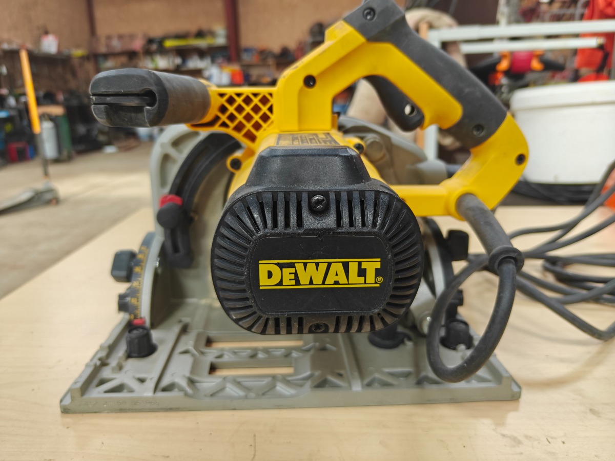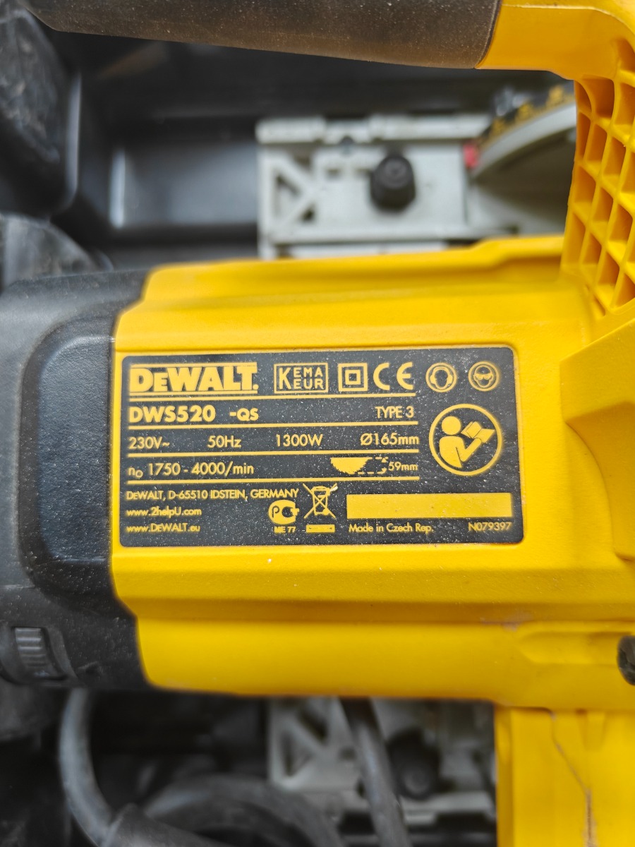 Dewalt Dyksav model DWS520 i original kasse til hørende 2 stk styreskinner 150 & 260 cm Lange, pæn stand