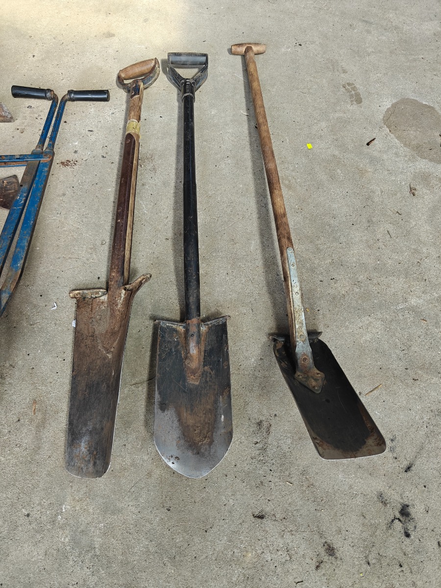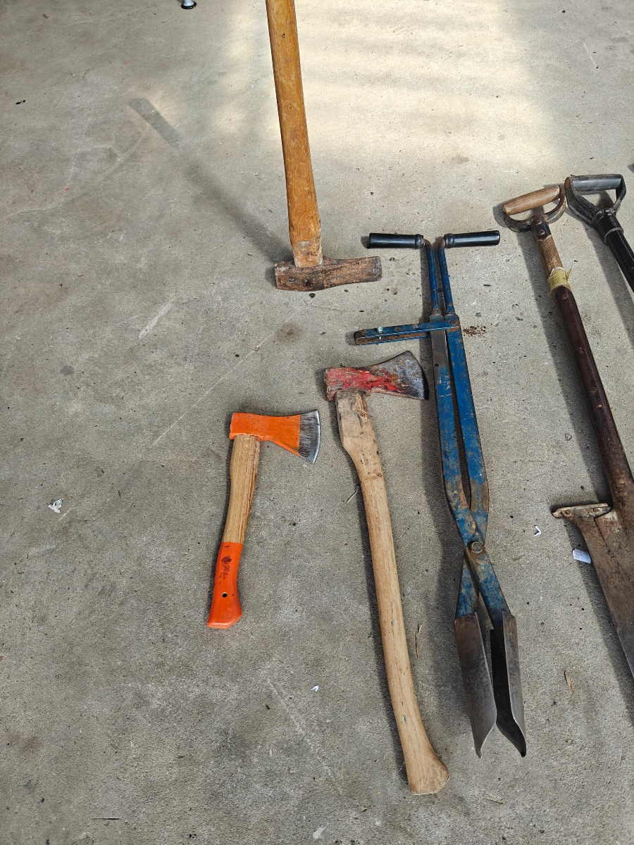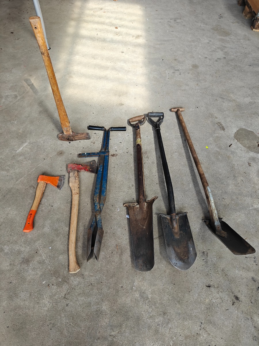 Div have redskaber, spader, graveeskovl,pælespade, pælebor ø 15cm og økser