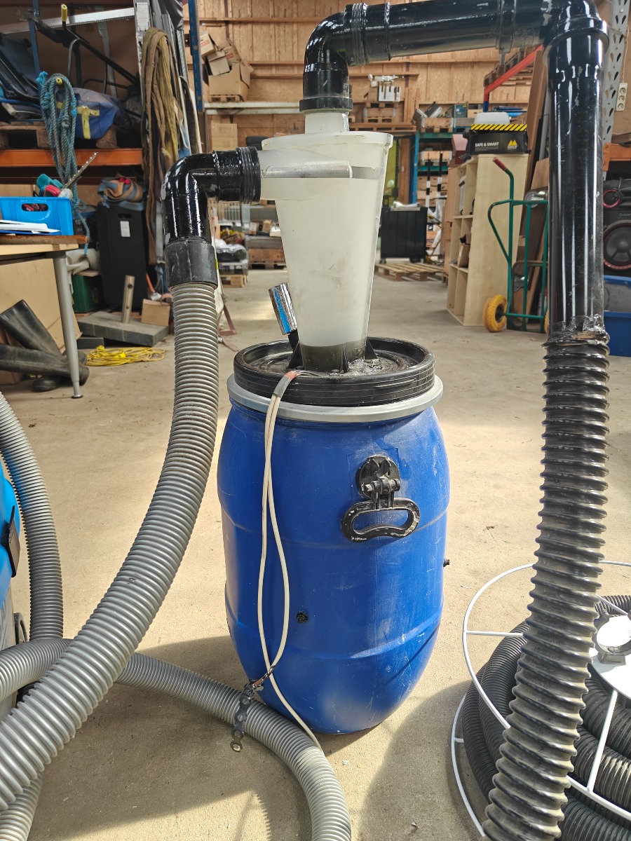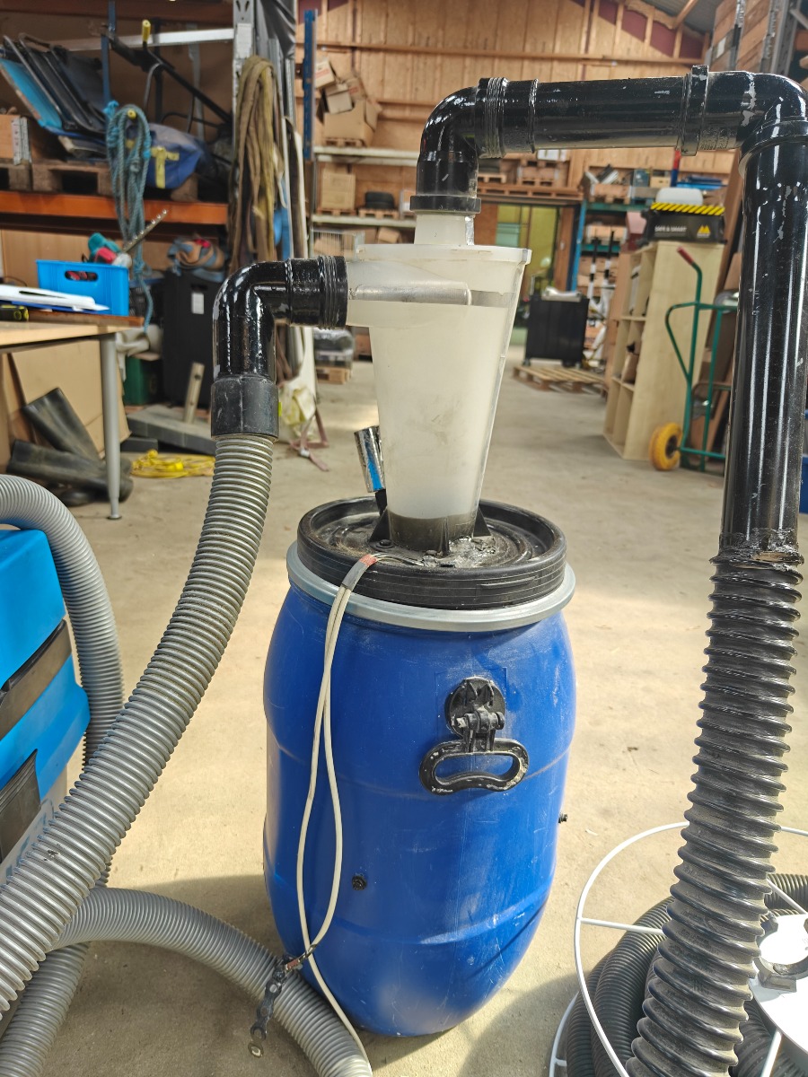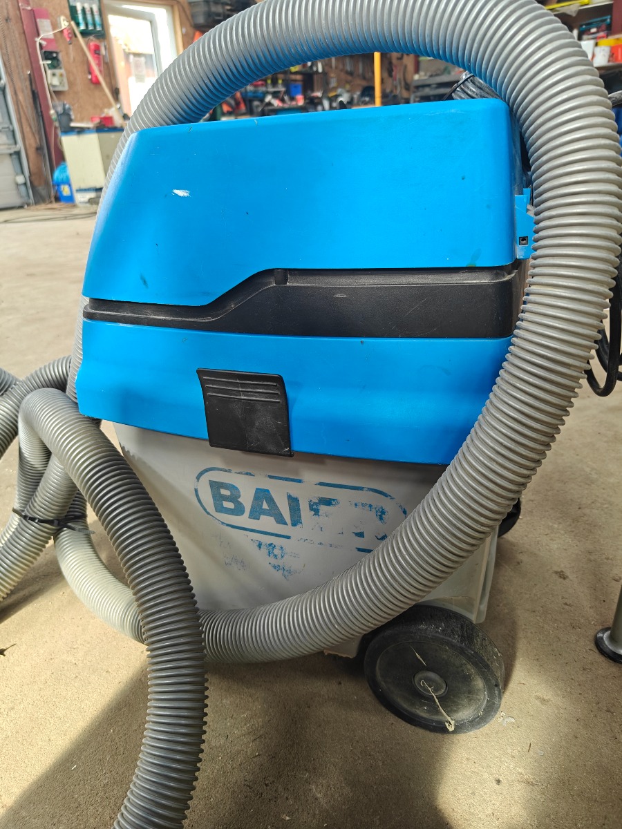 Industri søvsuger med ekstern opsamler med cyclon så filter aldrig stopper til og slangerulle med sugeslange, brugt