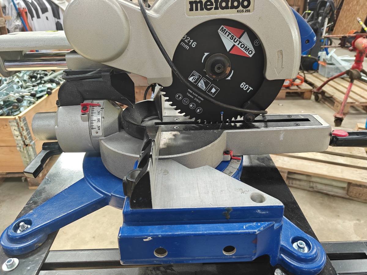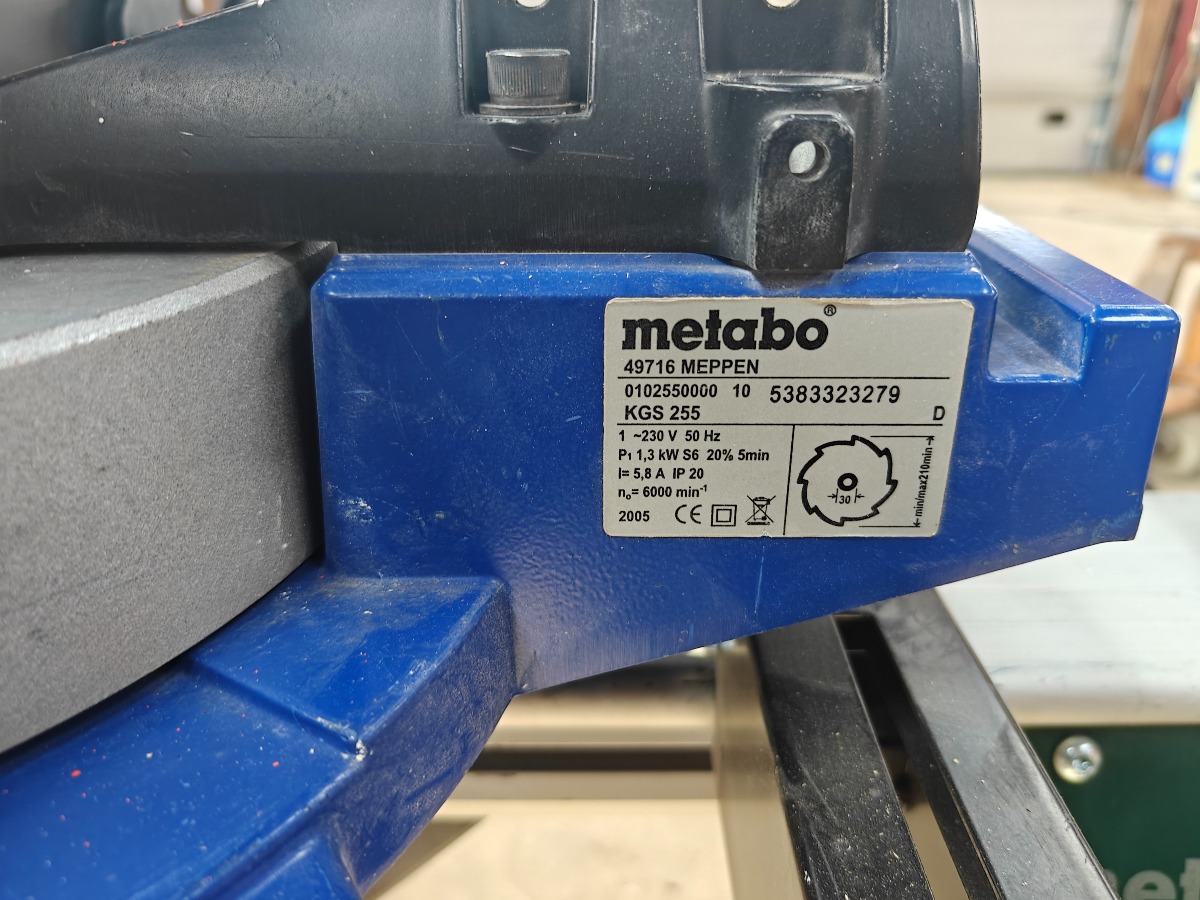 Metabo kap / geringssav model Kgs 255 med tilhørende understel model Ksu 251, brugt pæn stand