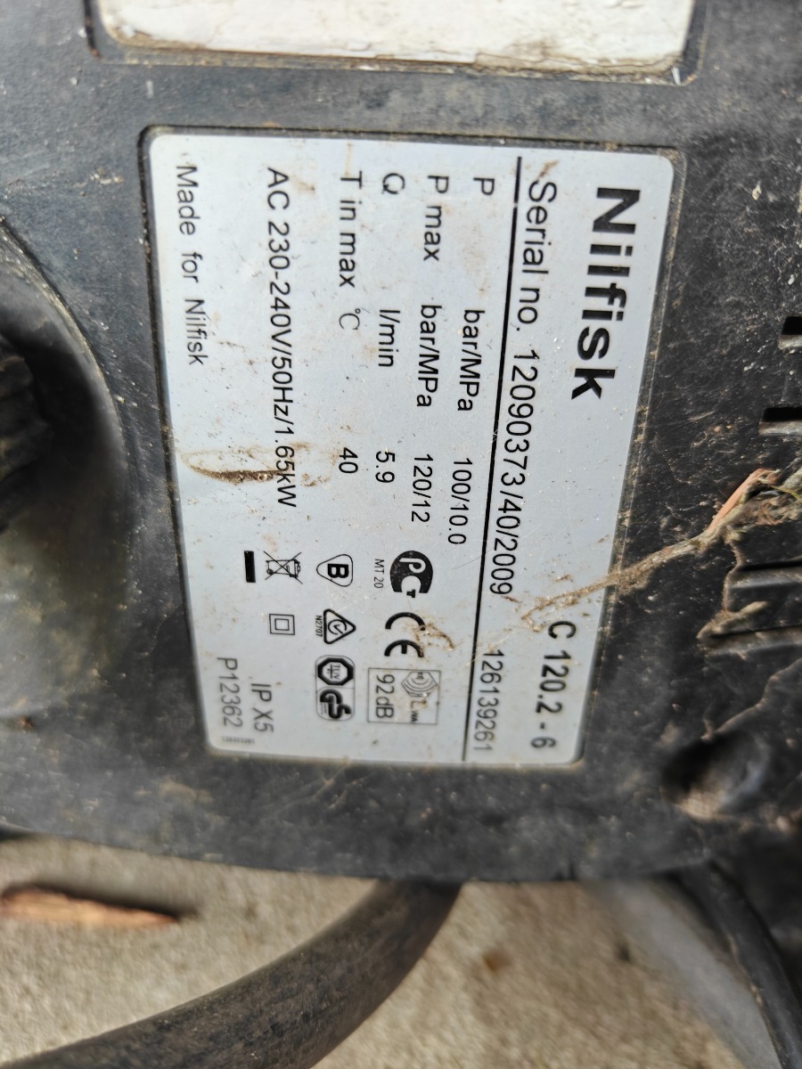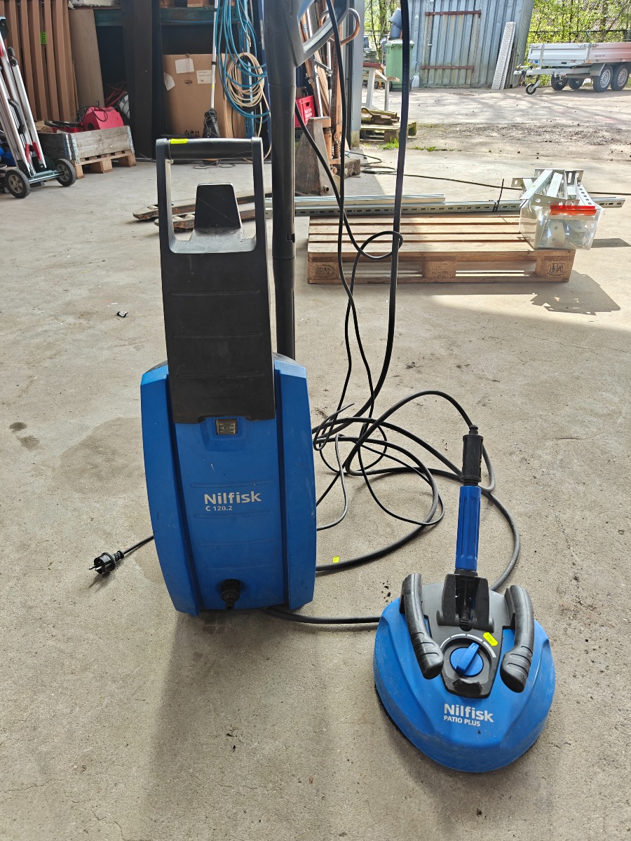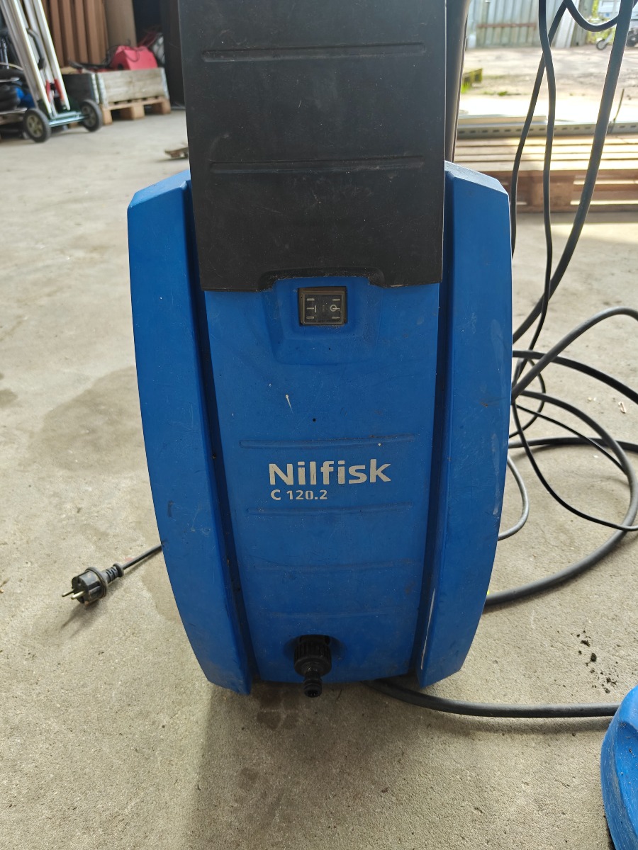 Nilfisk Højtryksrenser c120.2 med tilhørende fliserenser & nilfisk våd/støvsuger buddy ll 12 brugt, ok stand