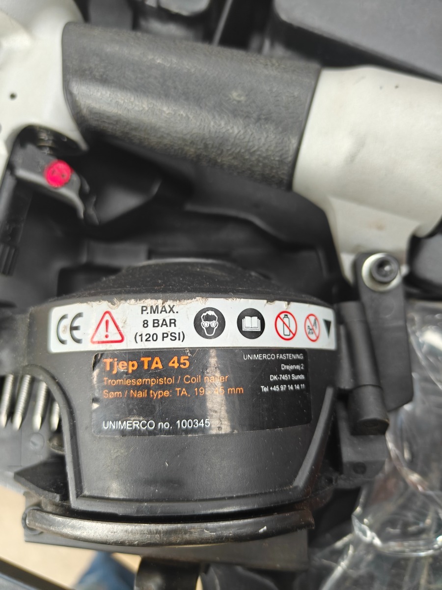 Tjep tromlesømpistol model TA 45 med 2 ks. søm  str. 3,0 x 38 mm 1920 stk pr./ks