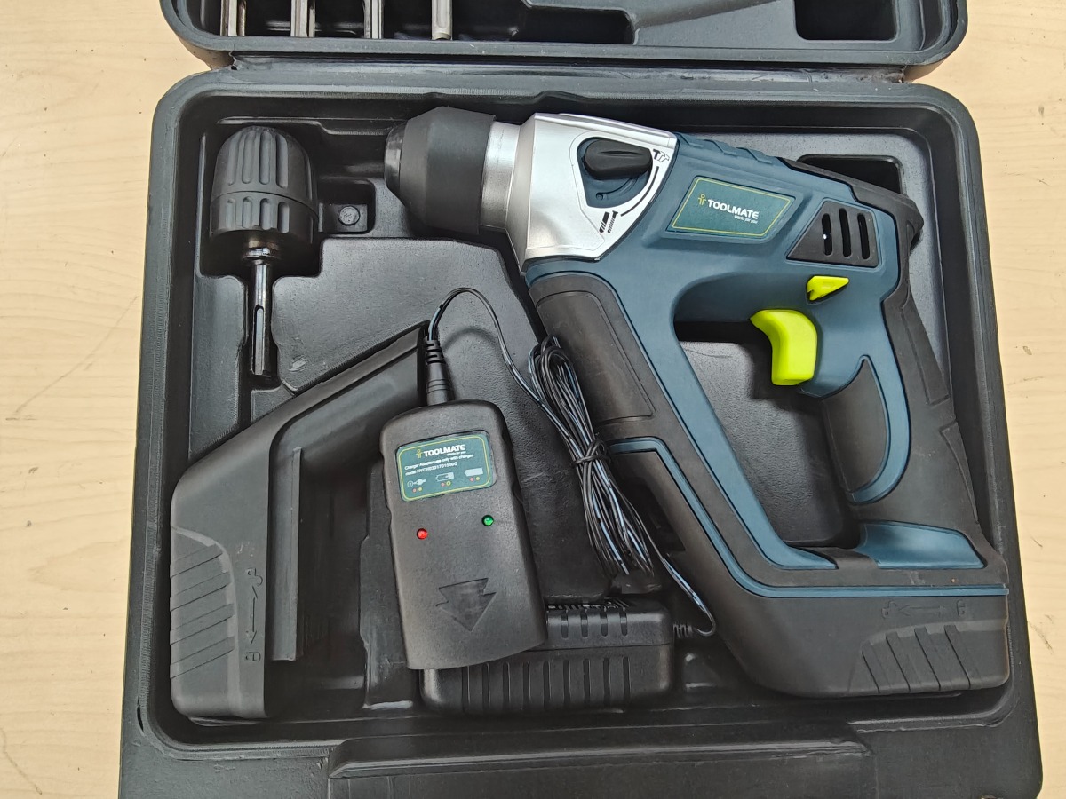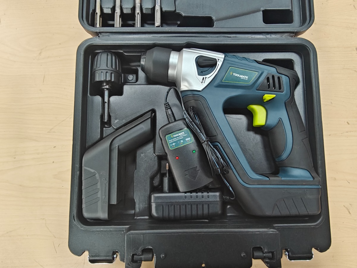 Toolmate Akku bore / skrue maskine med  2 borepatroner og murbor, kun lidt brugt