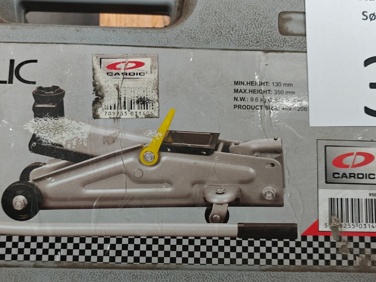 Hydraulisk donkraft i kuffert. Mrk Cardic. 2 Tons. Max højde: 350 mm. Brugt. MOMSFRI