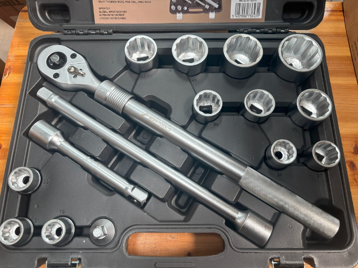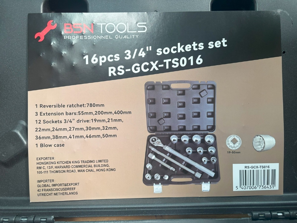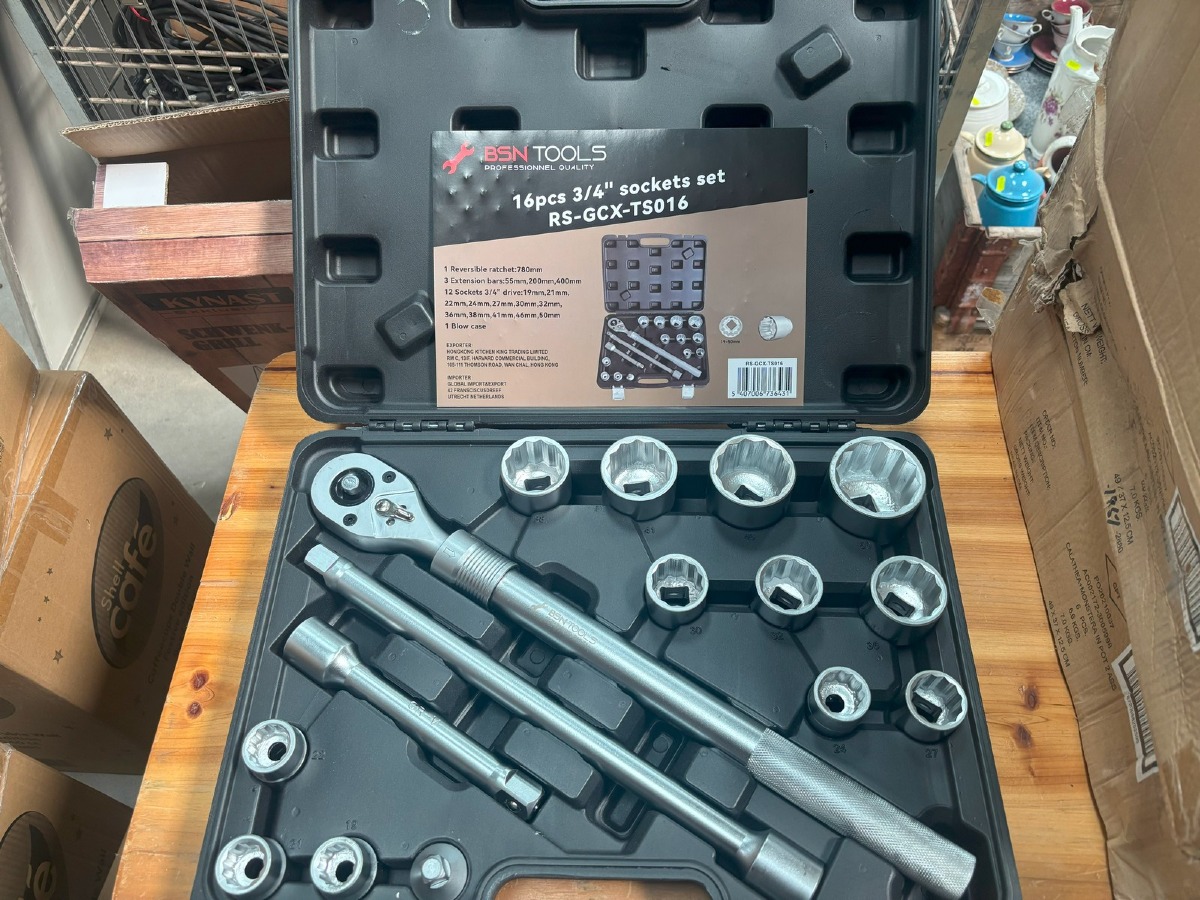 3/4 topnøglesæt med 16 dele. Ubrugt