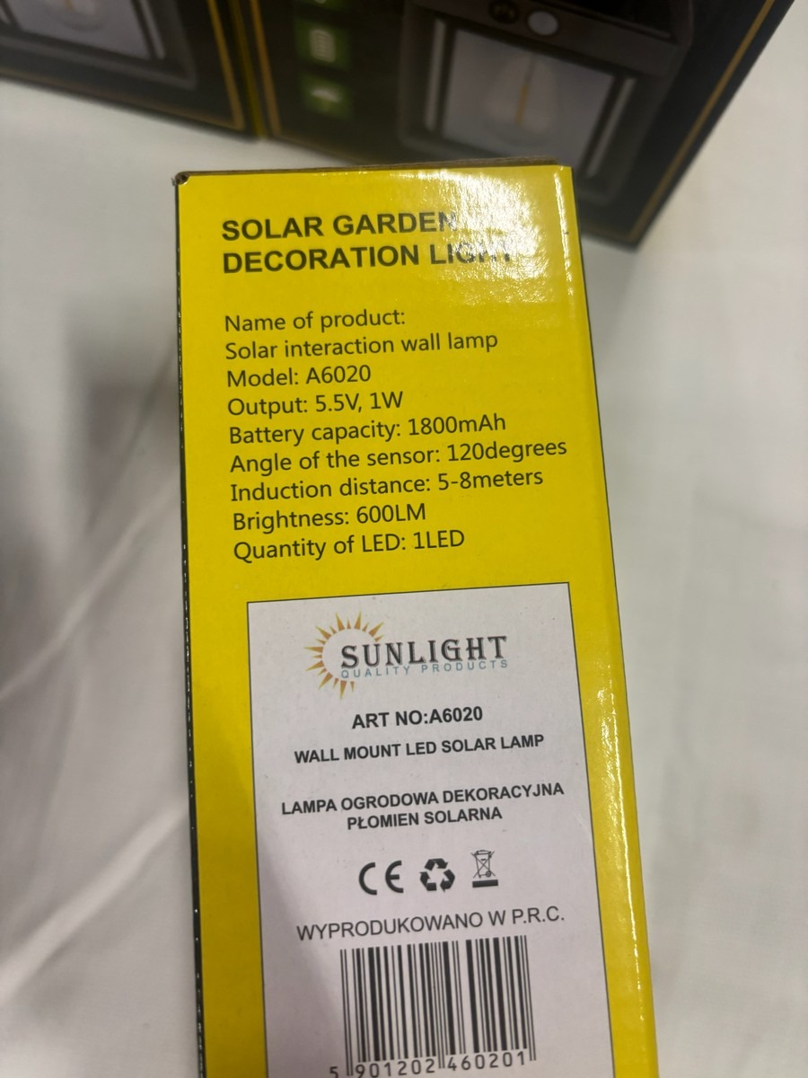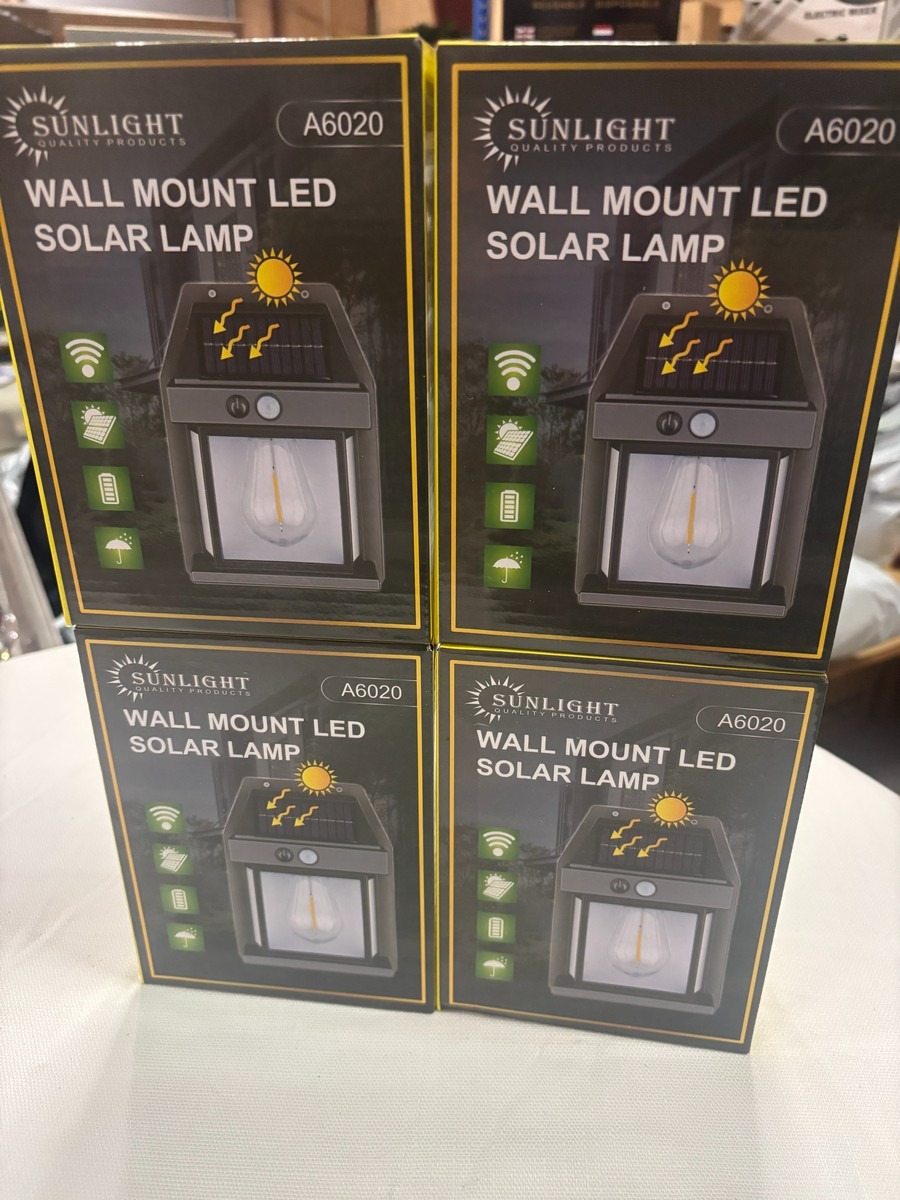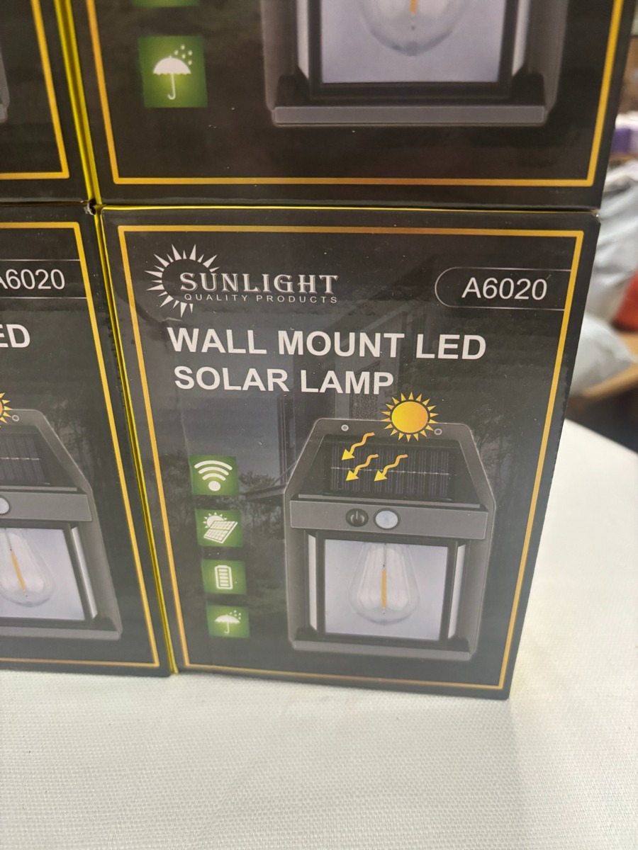 4 stk. Vægmonteret LED-Solcellelamper (Ubrugt)