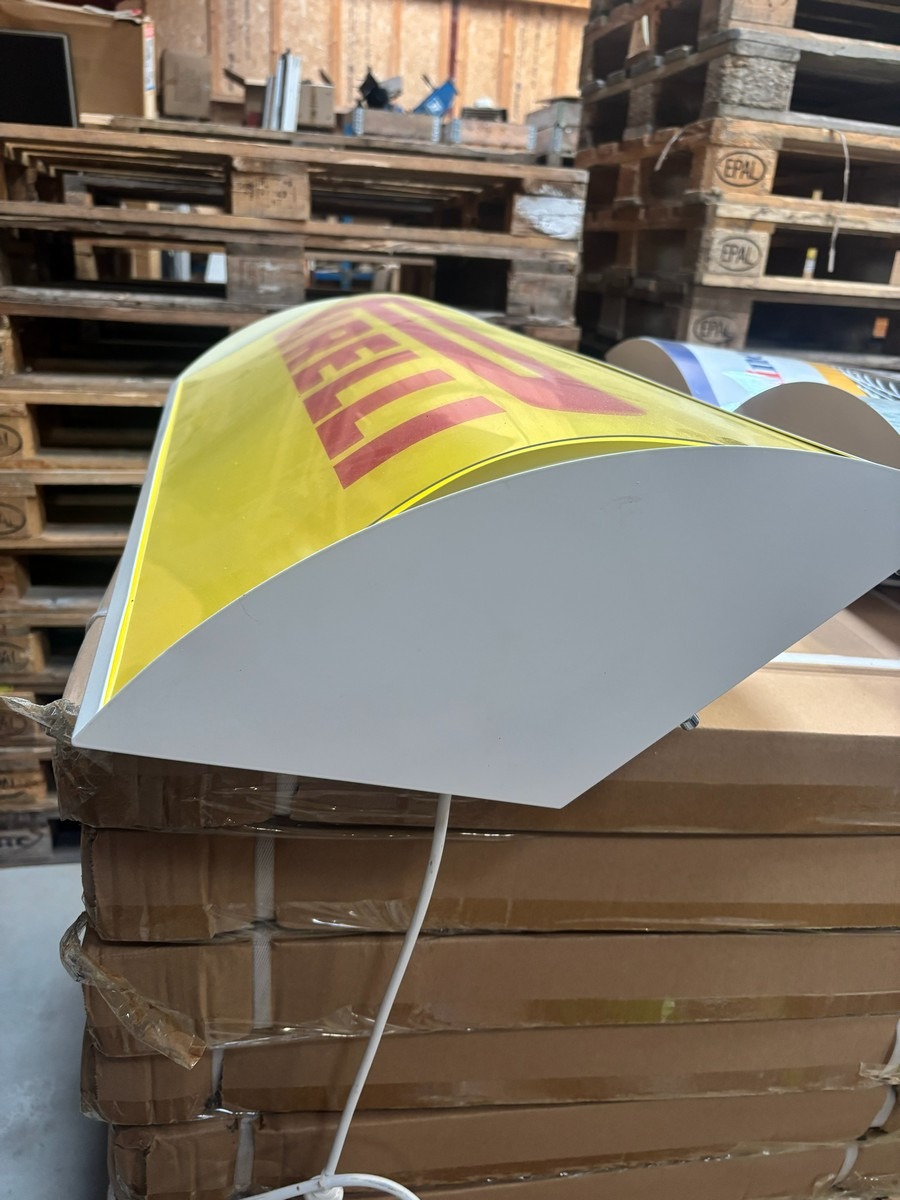 Pirelli lysskilt. Måler ca. 90 cm i længden.