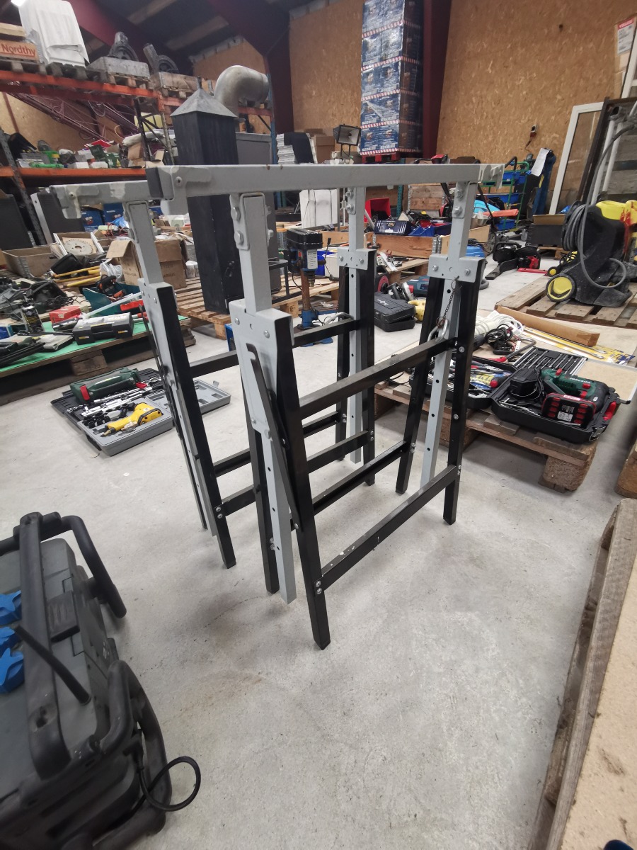 2 metalbukke. Fremstår med brugsspor.