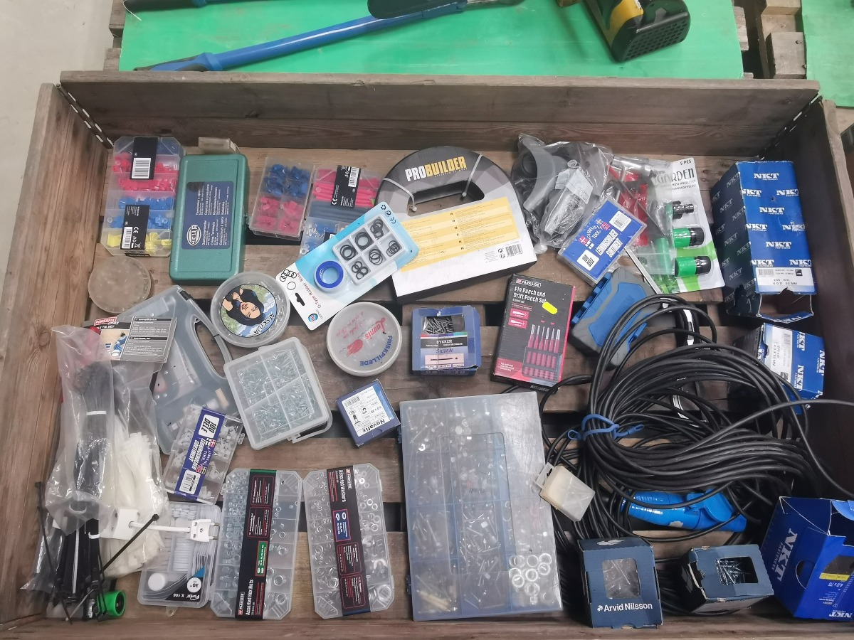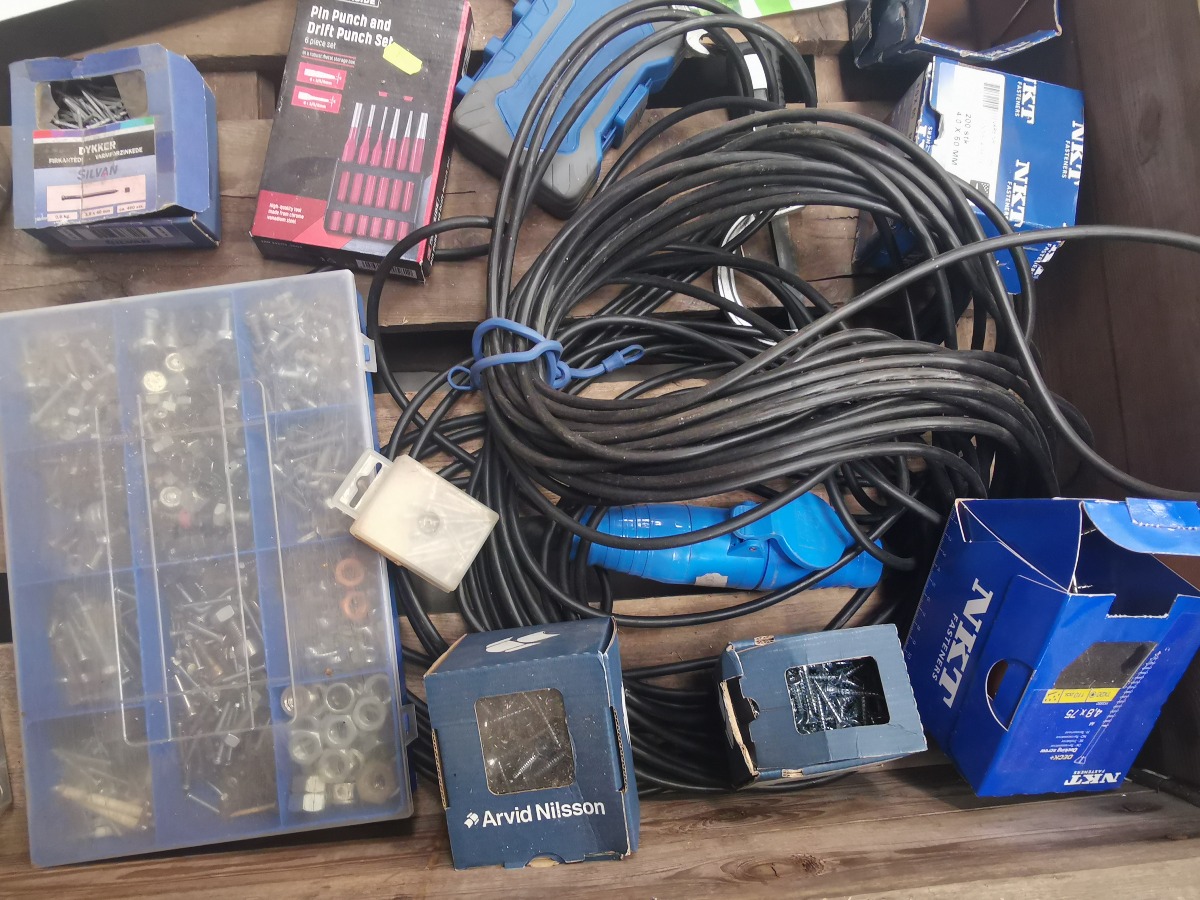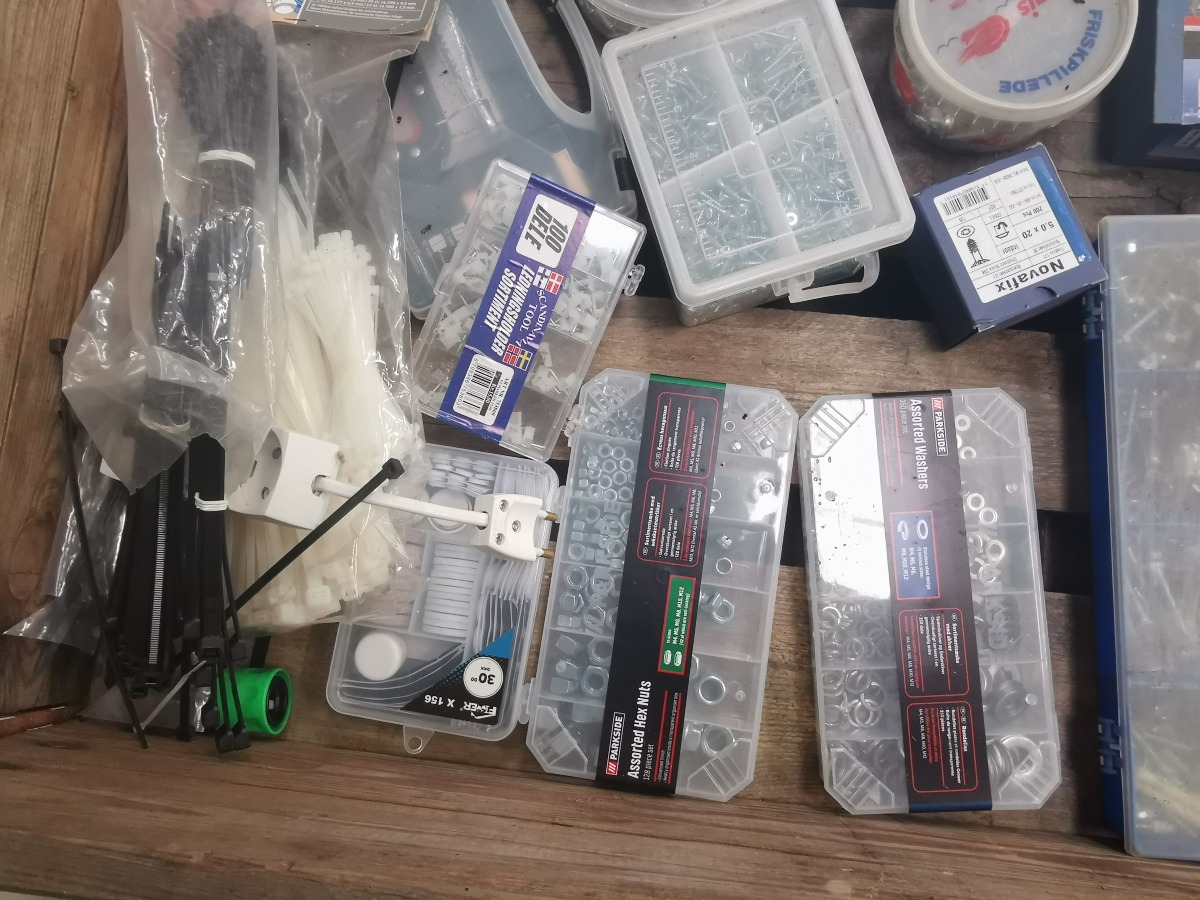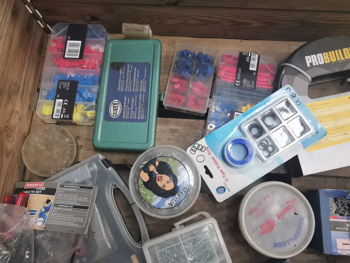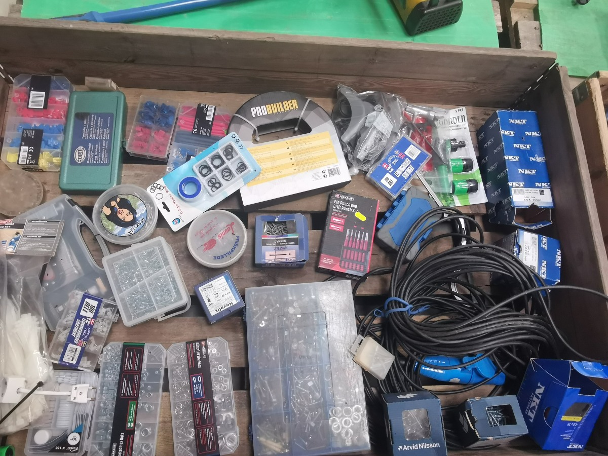 Div. til det lille hjemmeværksted. El-reservedele, skruer, møtriker og andre ting.