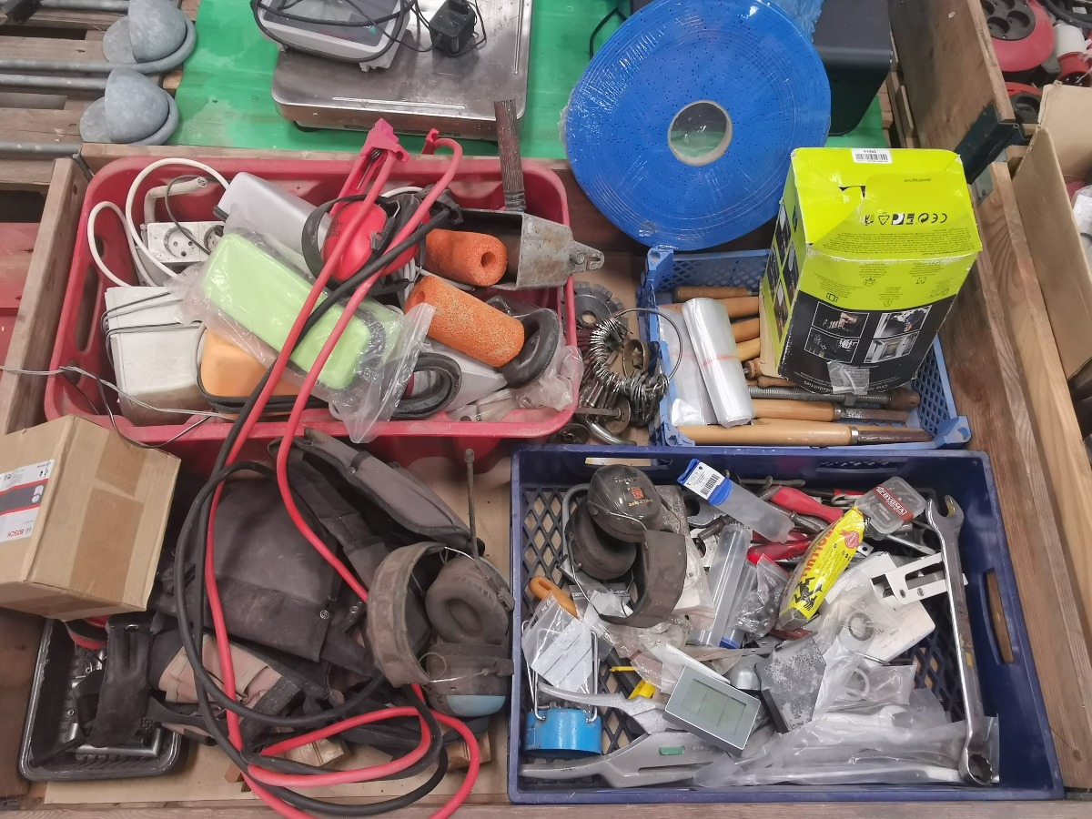 Forskelligt værktøj m.m. Div. håndværktøj og andre hjælpemidler. Fremstår brugt.
