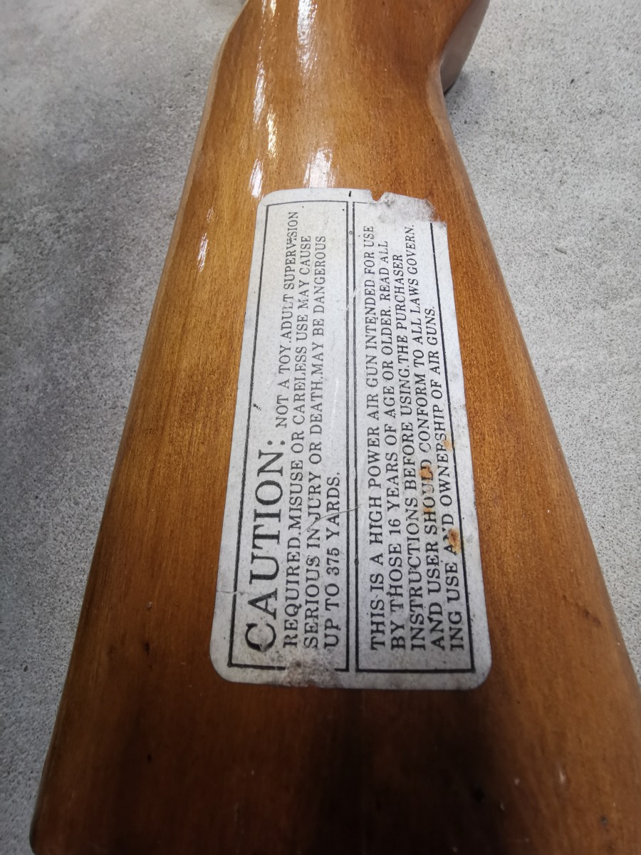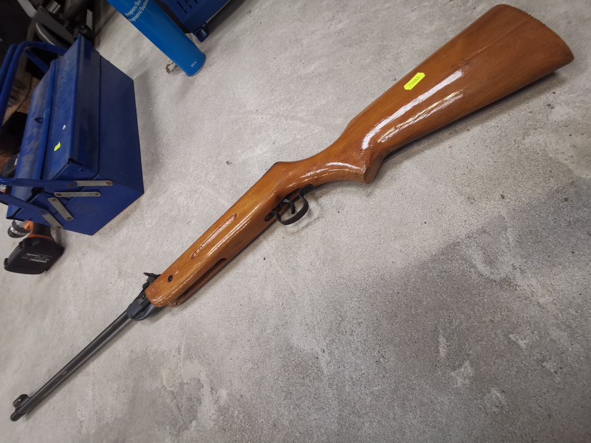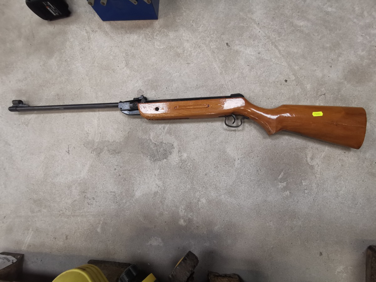 Luftgevær. Ukendt fabrikat og kaliber. Fremstår med overfladerust.