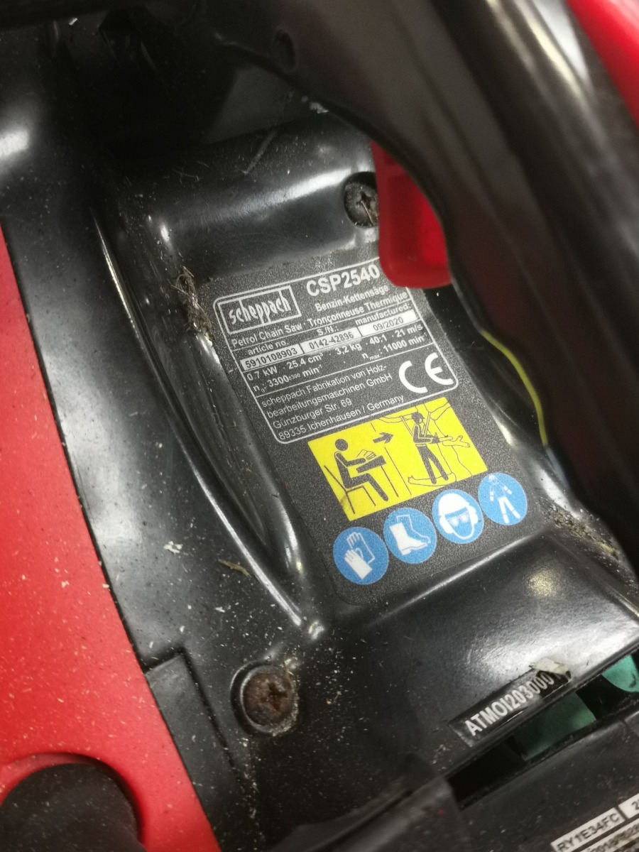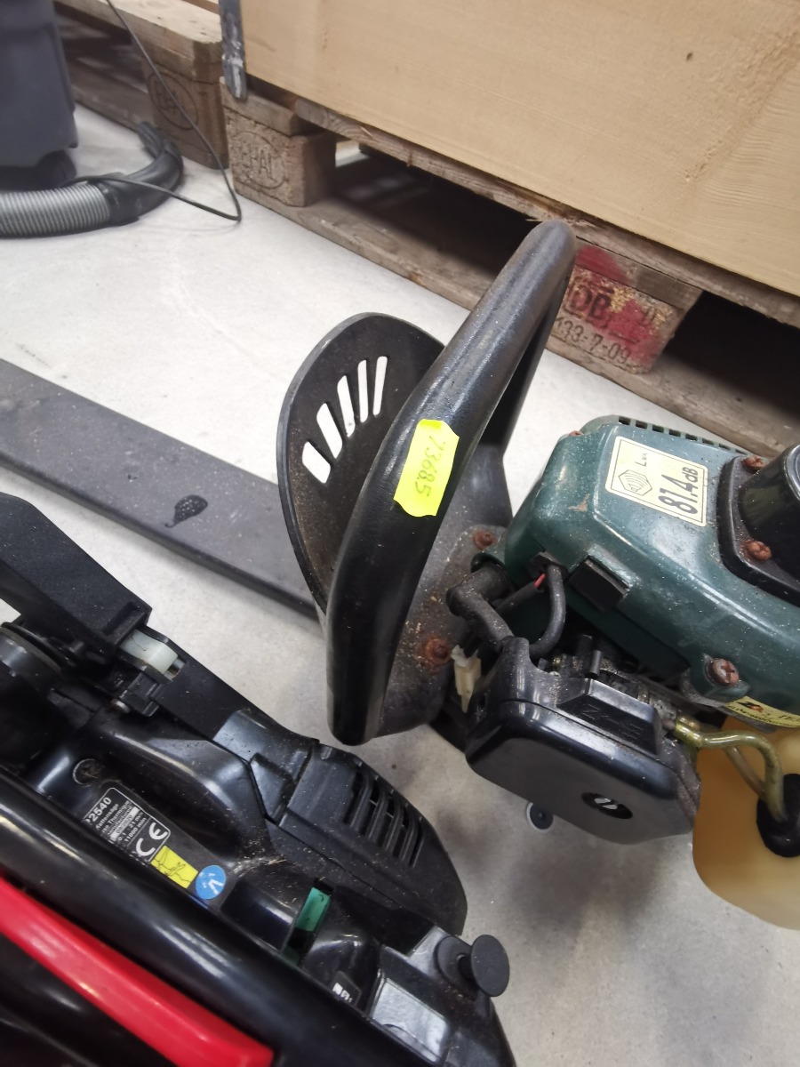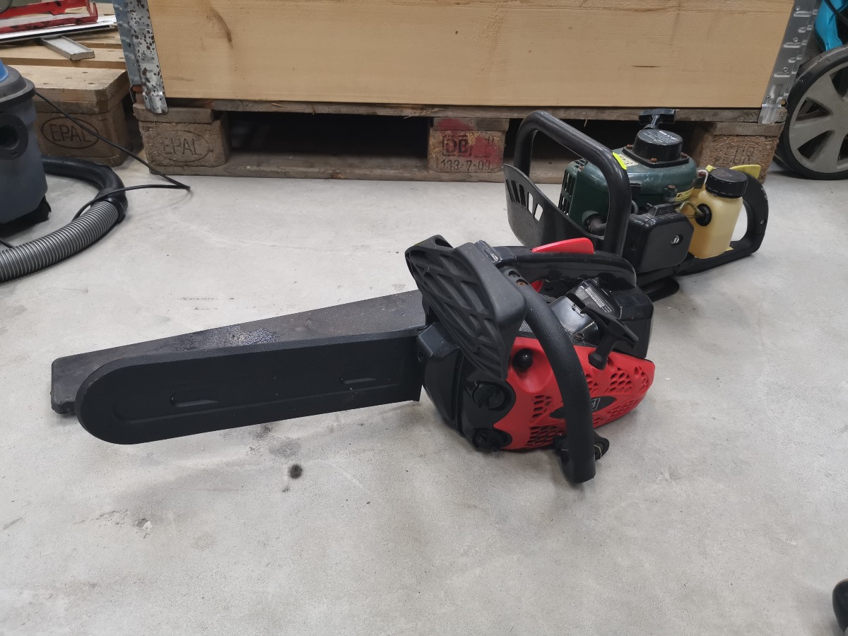 Scheppach motorsav og Park hækkeklipper. Begge benzindrevne og brugte.