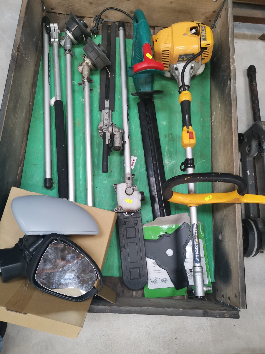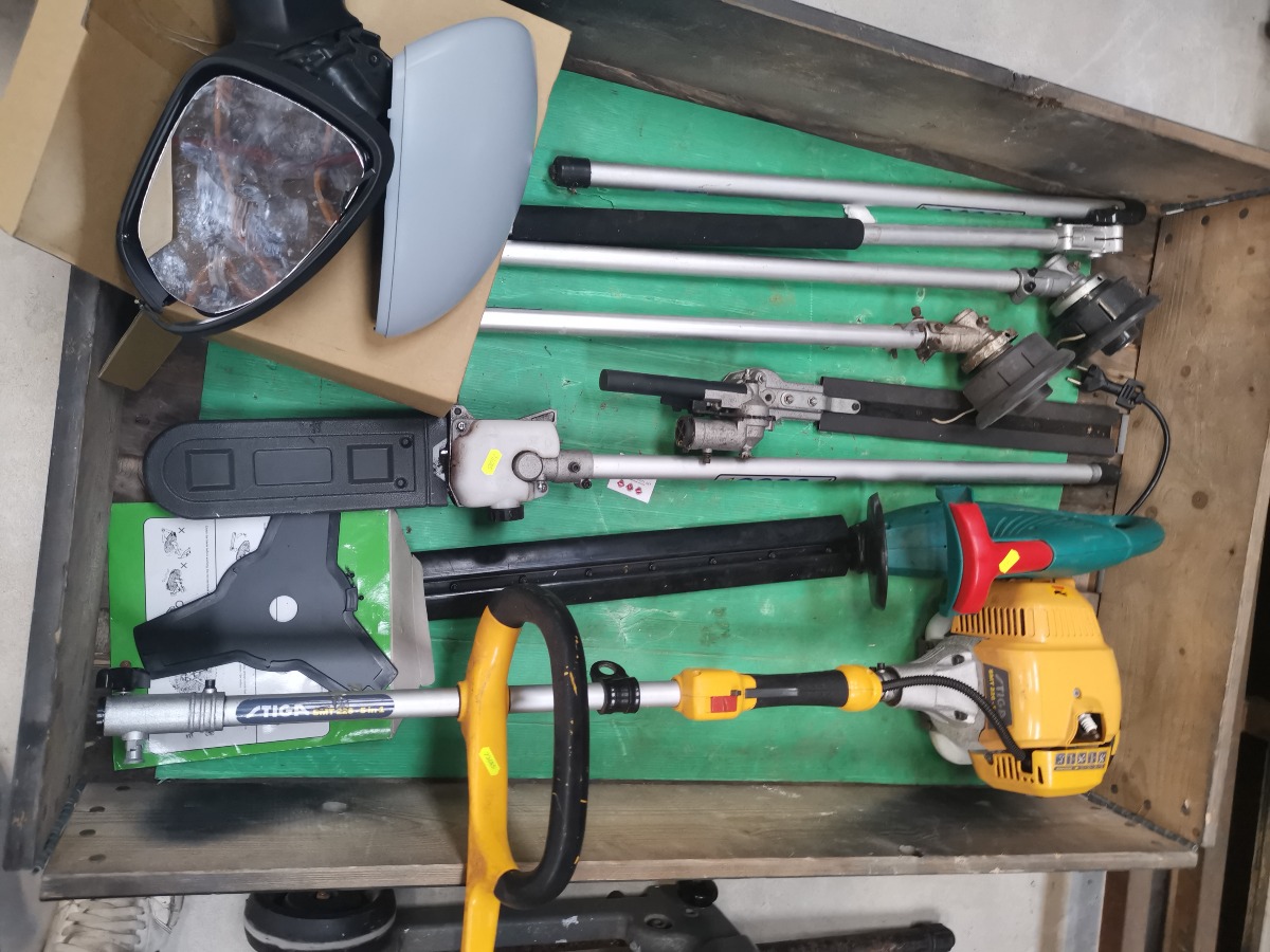 Stiga SMT 226 - 5 i 1 multiværktøj, benzin, med buskryder, stangsav m.m. samt Bosch AHS 4-16 hækkeklipper ,230 V. Hertil højre sidespejl til bil. Mærke ukendt. Alle dele med brugsspor.