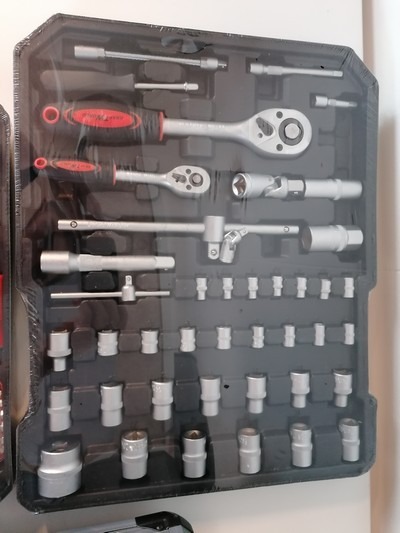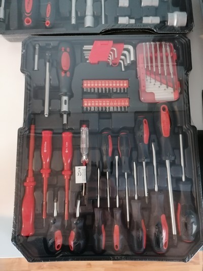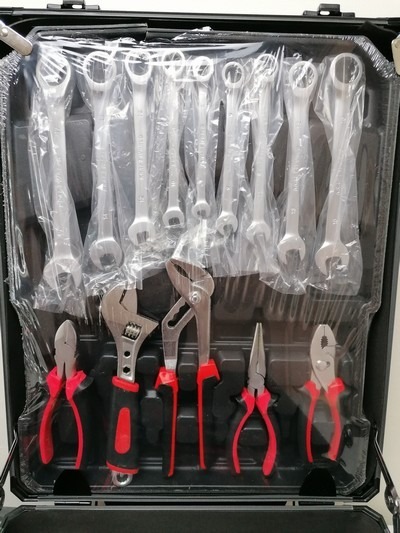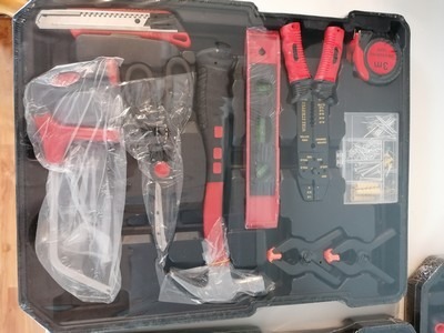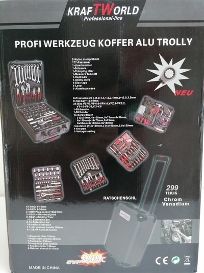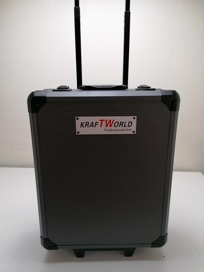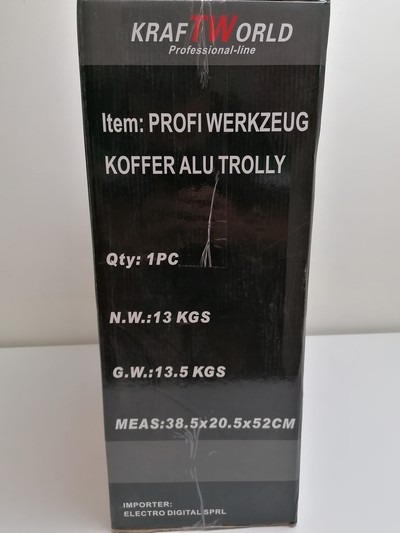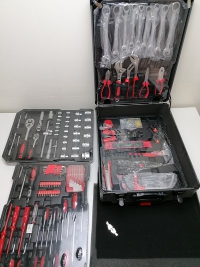 Værktøjskuffert med værktøj. På hjul og med teleskopisk håndtag, så den er nem at transportere frem og tilbage. Ubrugt og i original emballage