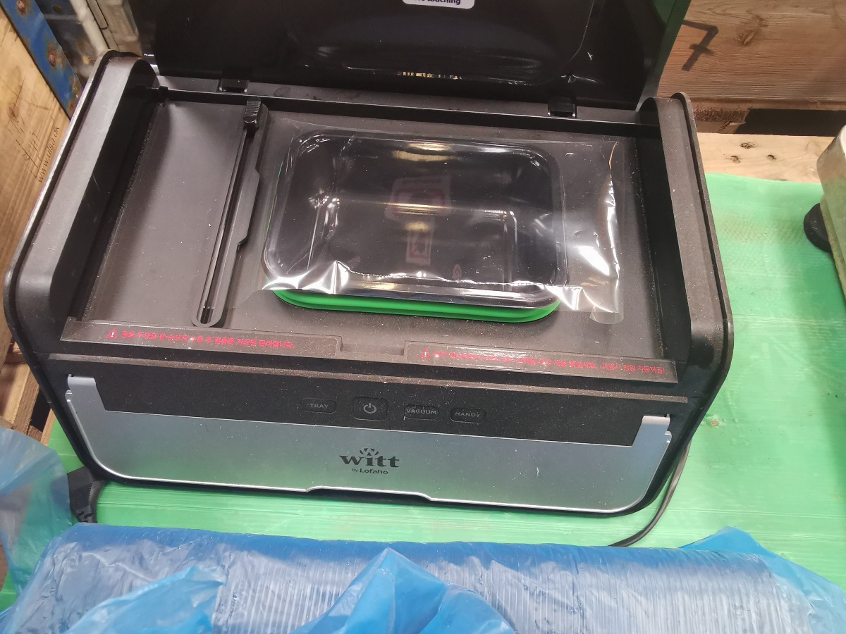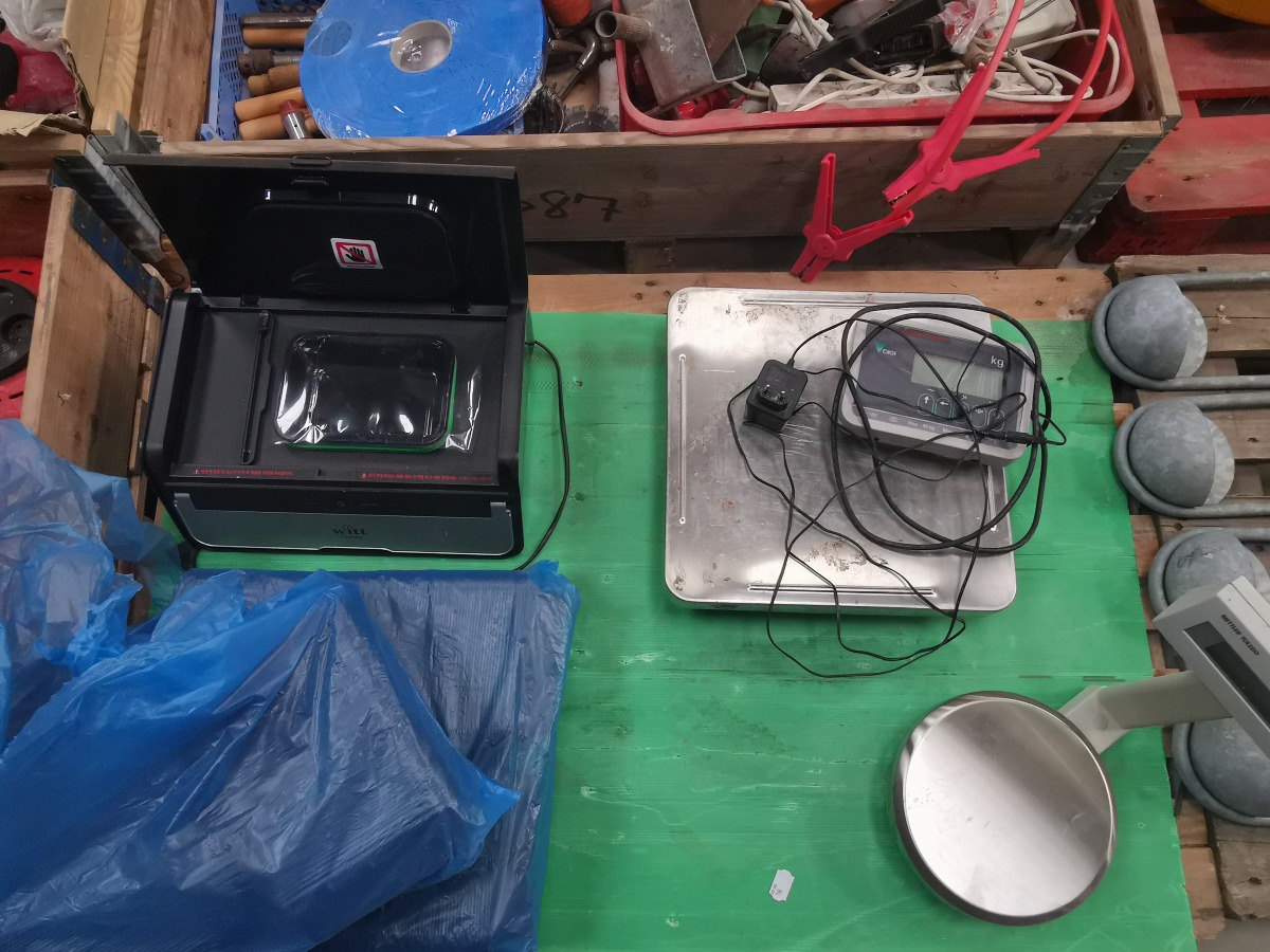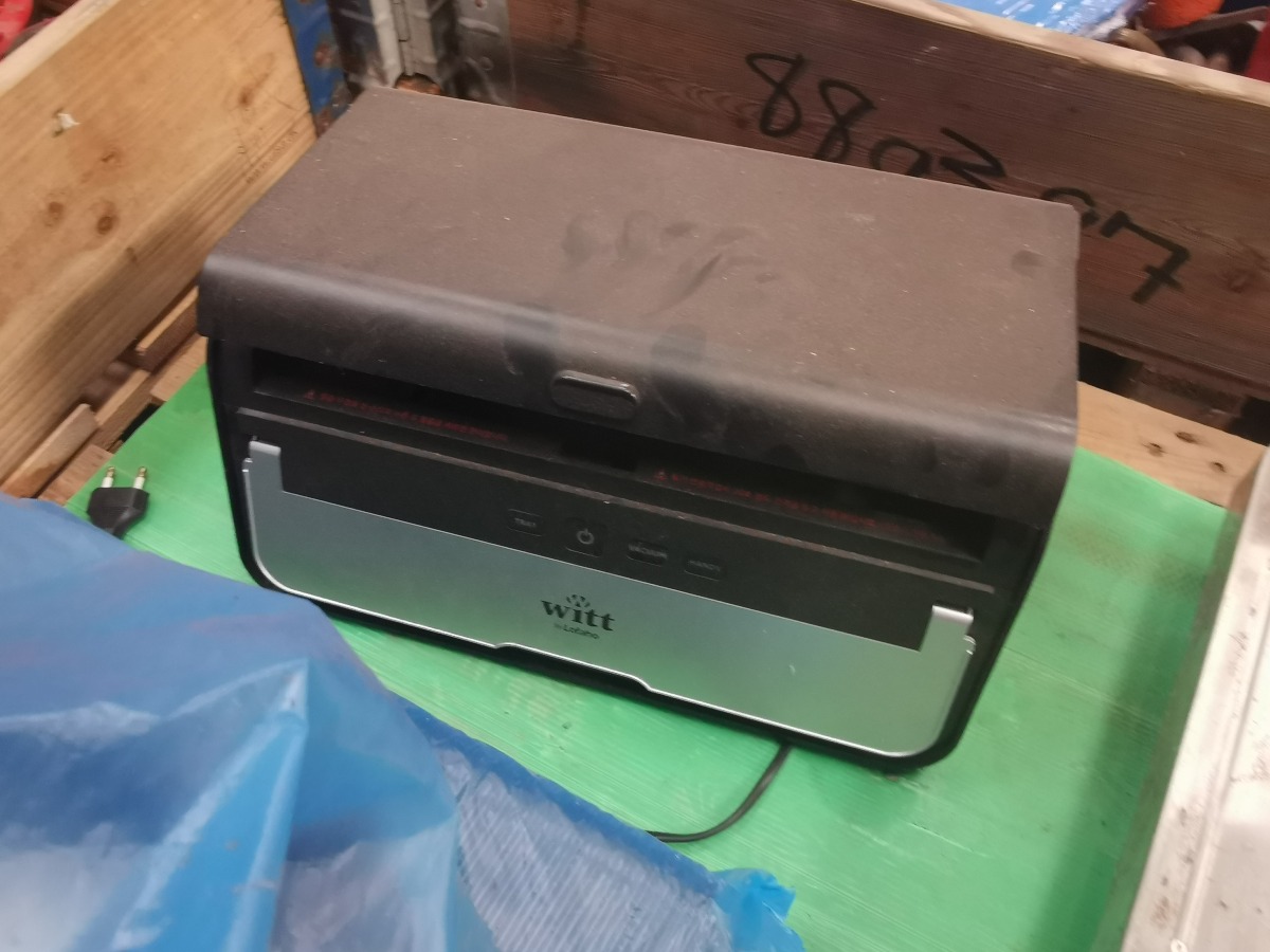 Witt vacuum-maskine til plastbakker. Hertil lille portion bakker. Mettler Toledo PS7 vægt samt5 Scanvægt med løst display. Vi garanterer ikke for funktionaliteten