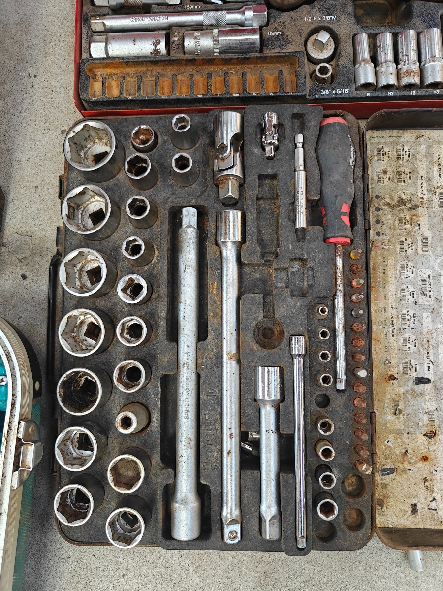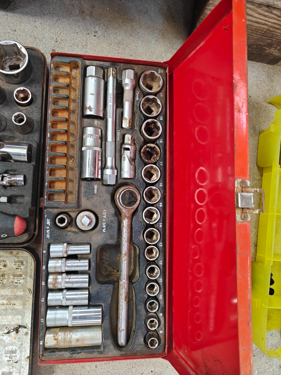 Div værktøj, topnøglesæt og div fastnøgler, alt sammen brugt