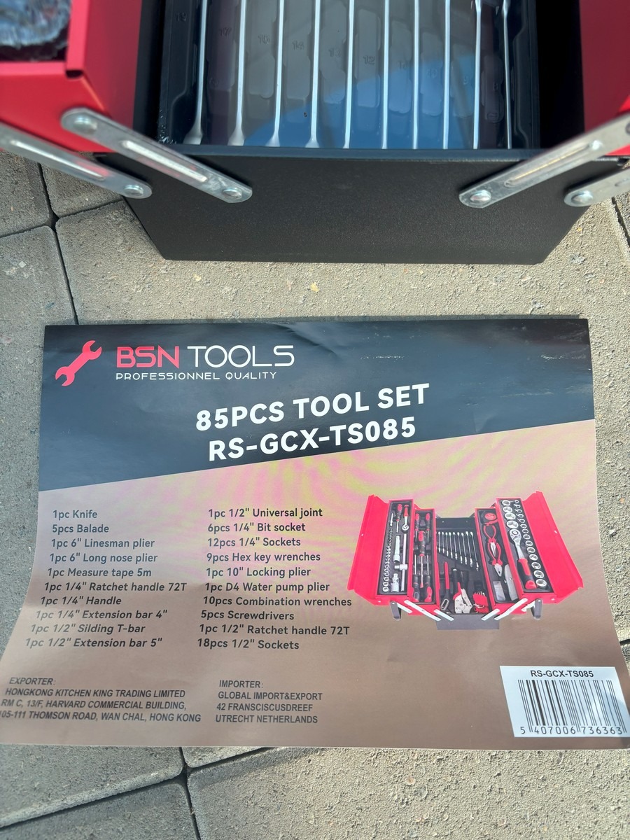 Værktøjskasse med 85 dele. Ubrugt