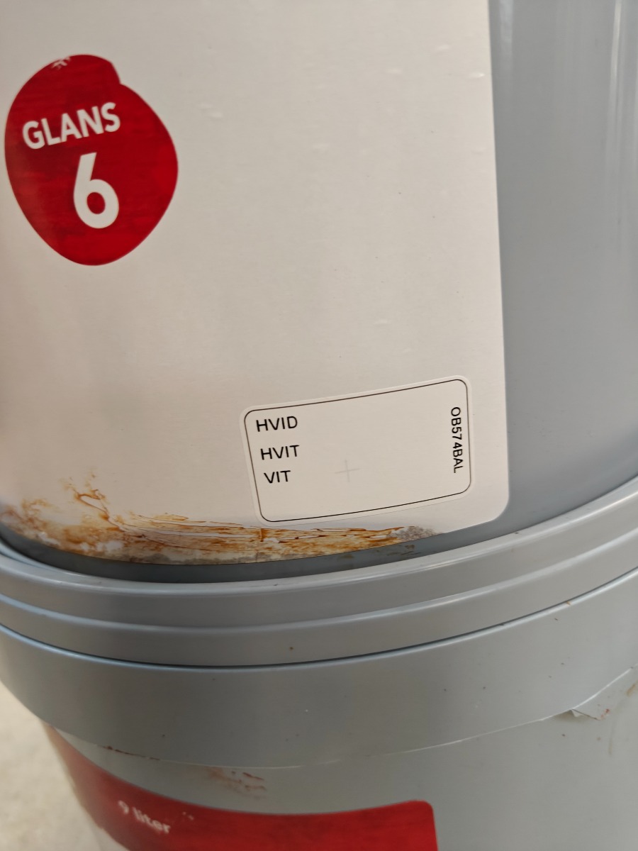Håndværker maling stabile 2x9 L glans 6 hvid. embalage indtakt men misharvet fra transport skade