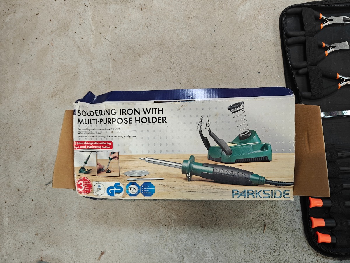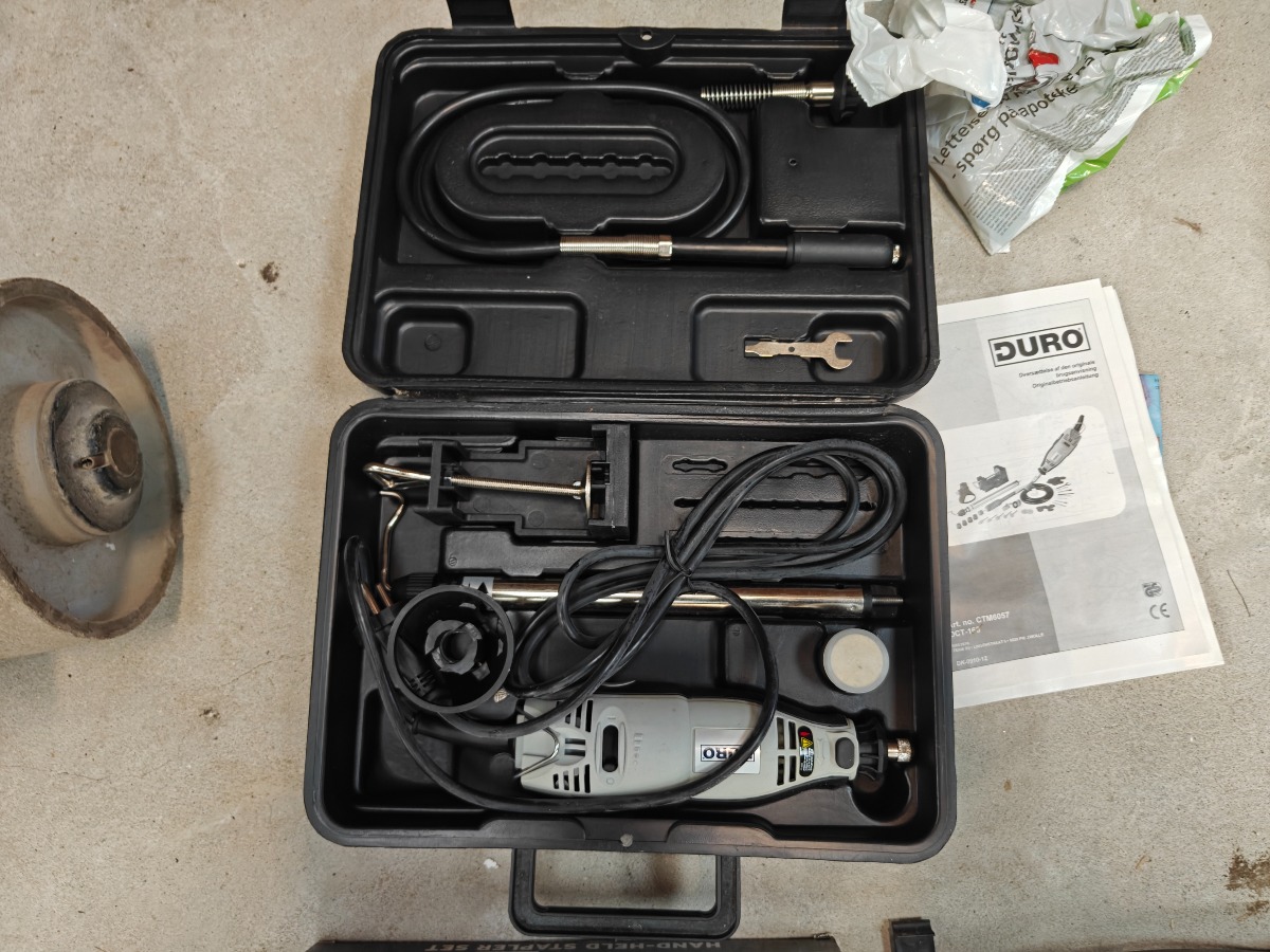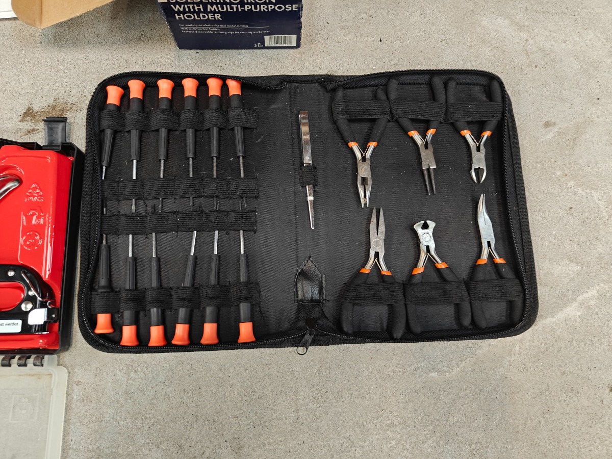 Parti hobby værktø. lode kolbe, slibemaskine, 3 klipsmaskiner + div.