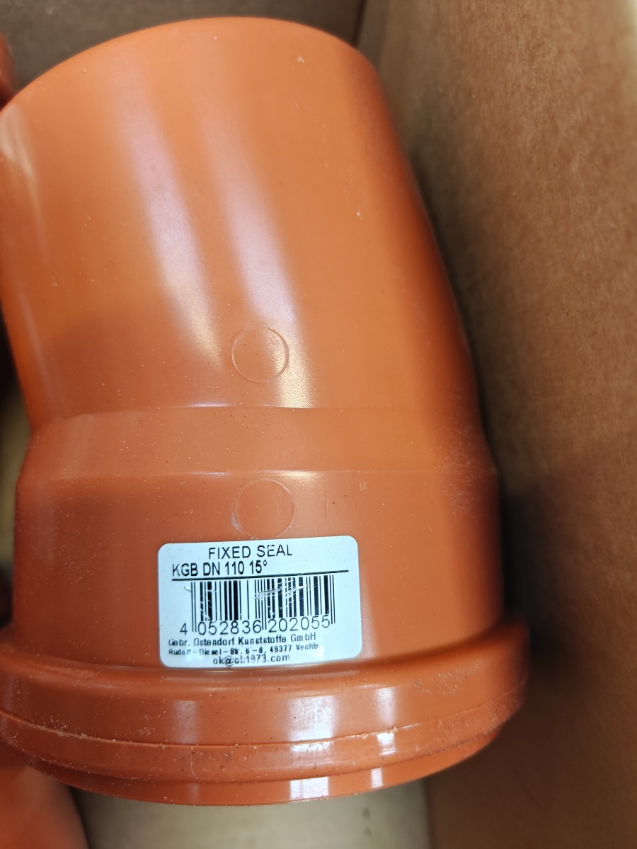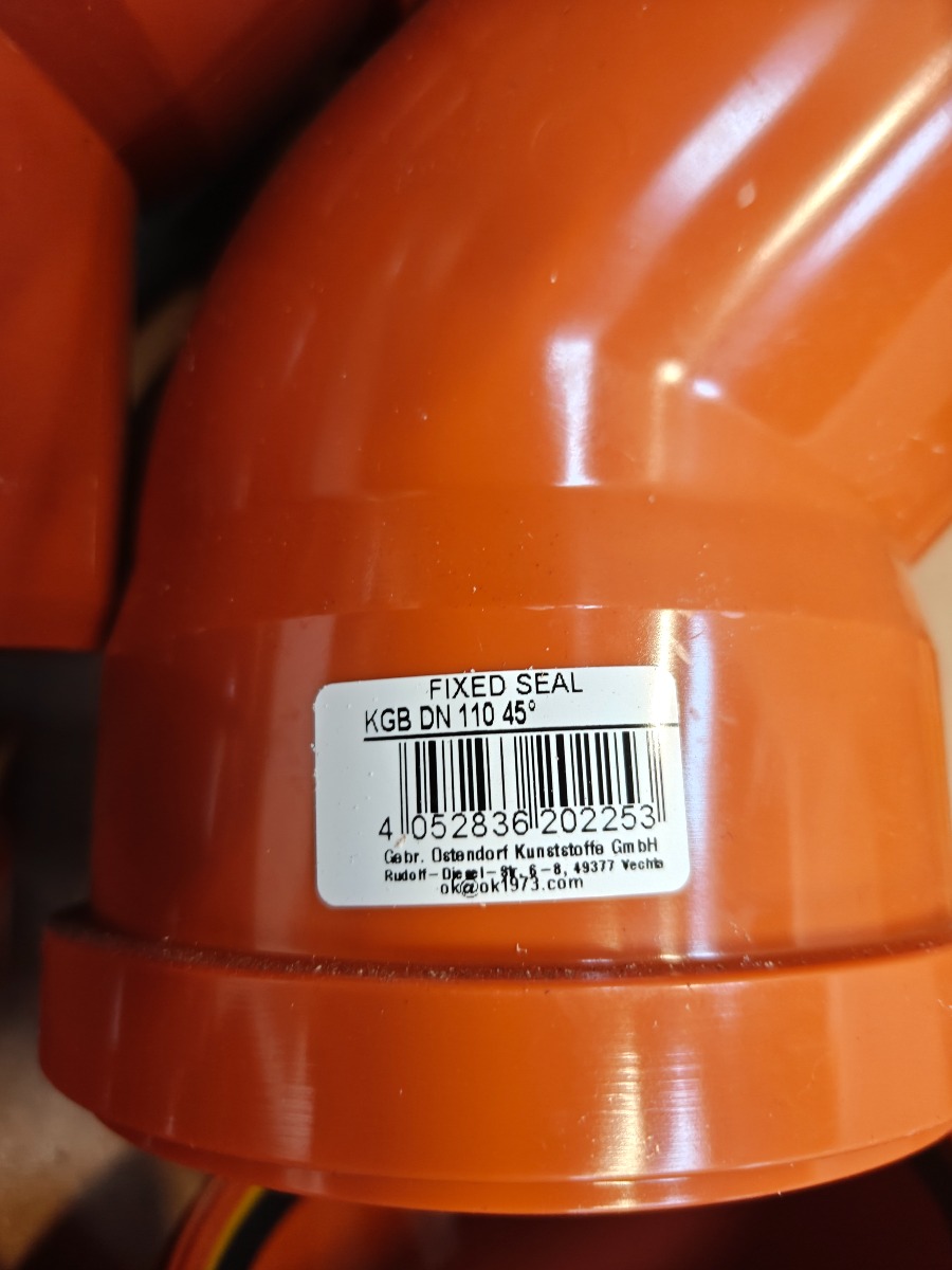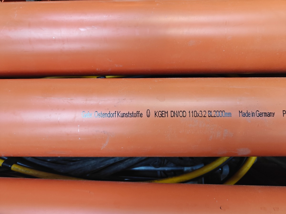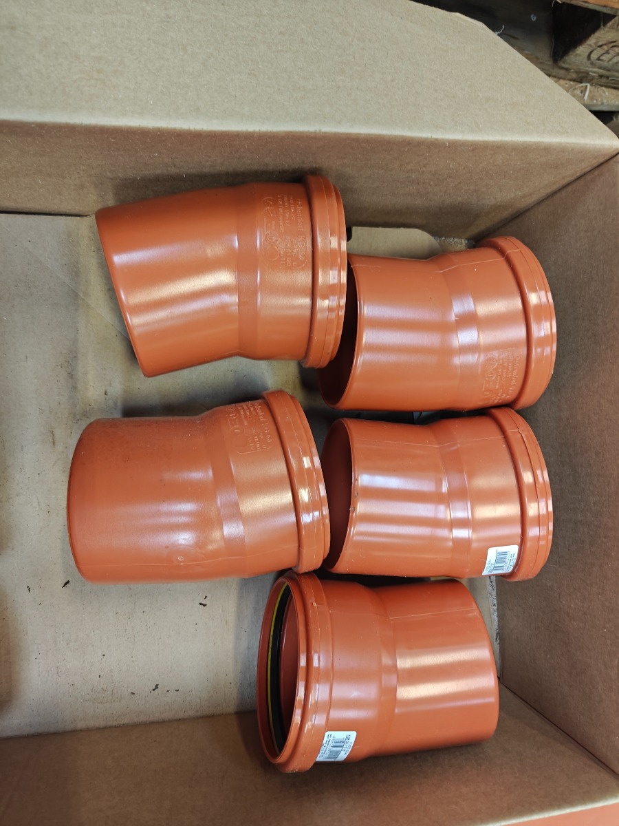 Parti kloark rør & fittings. 3 stk rør 110 x 3,2 x 2000 mm, 6 stk 45gr. bøjning, 2 stk 30 gr. bøjning, 5 stk 15 gr. bøjning & 5 stk muffer alt i 110 mm