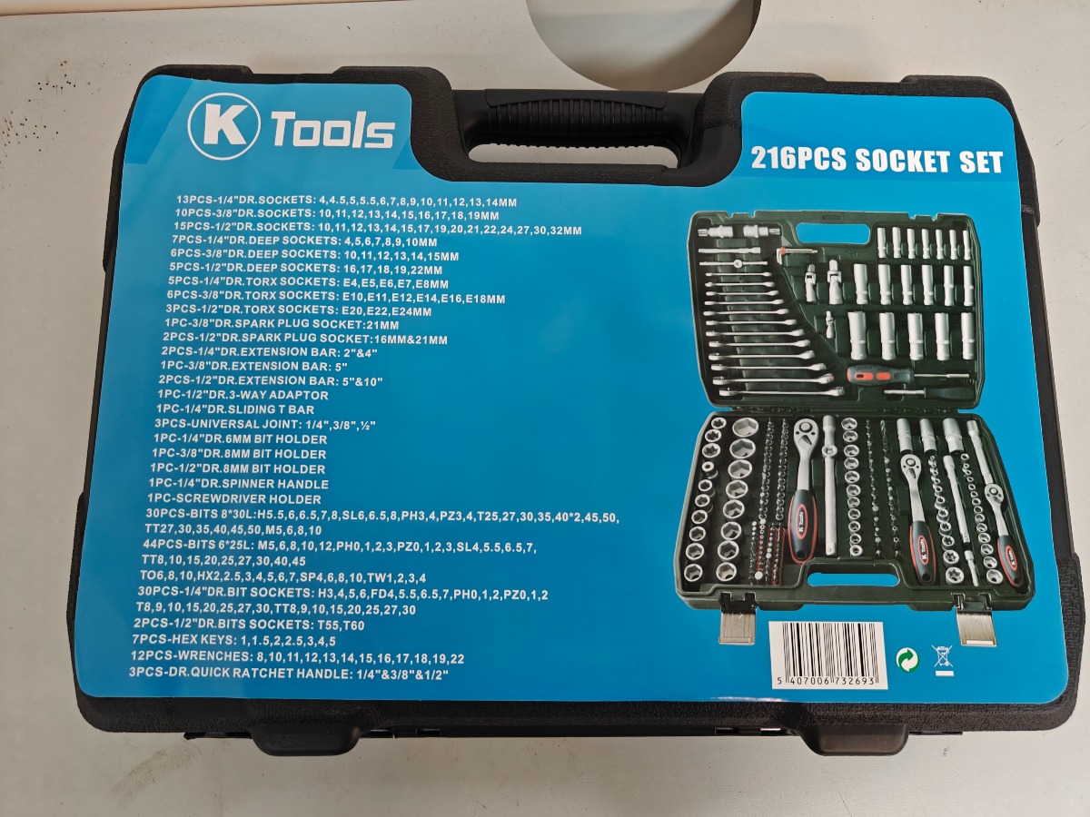 K-Tools topnøglesæt med 216 dele. Ubrugt og i original emballage