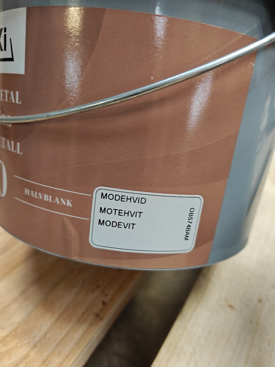 Træ & Metal maling. 2,25 L luxi ral. 9010, 2,25 L mode hvid glans 40 & 2,25 L dyrup hvid glas 50 embalage indtakt men misfarvet fra transport skade