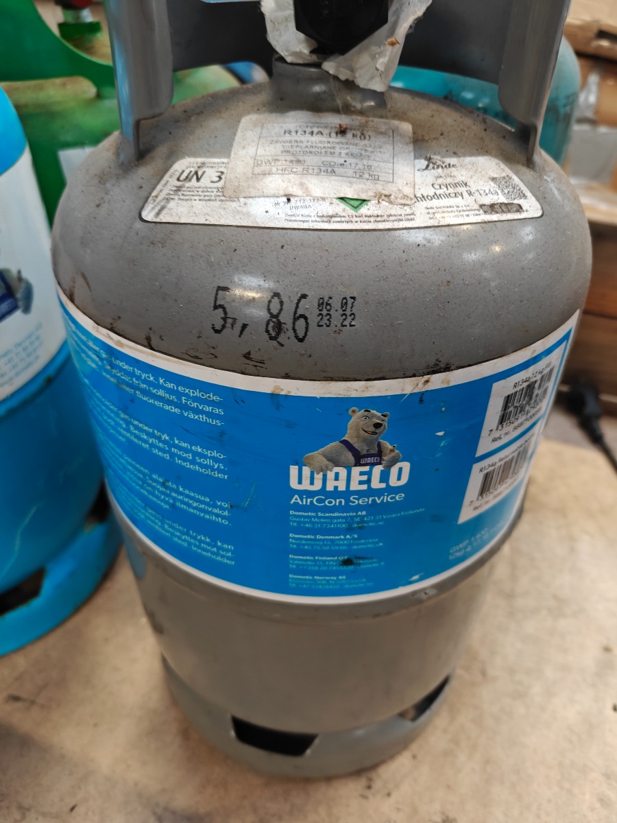 Trykflasker til kølemiddel uden indhold.