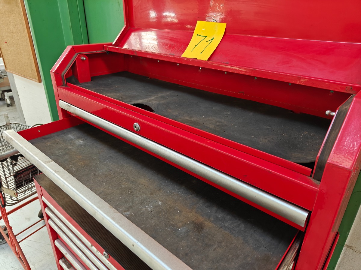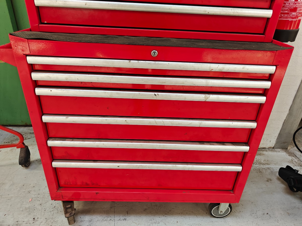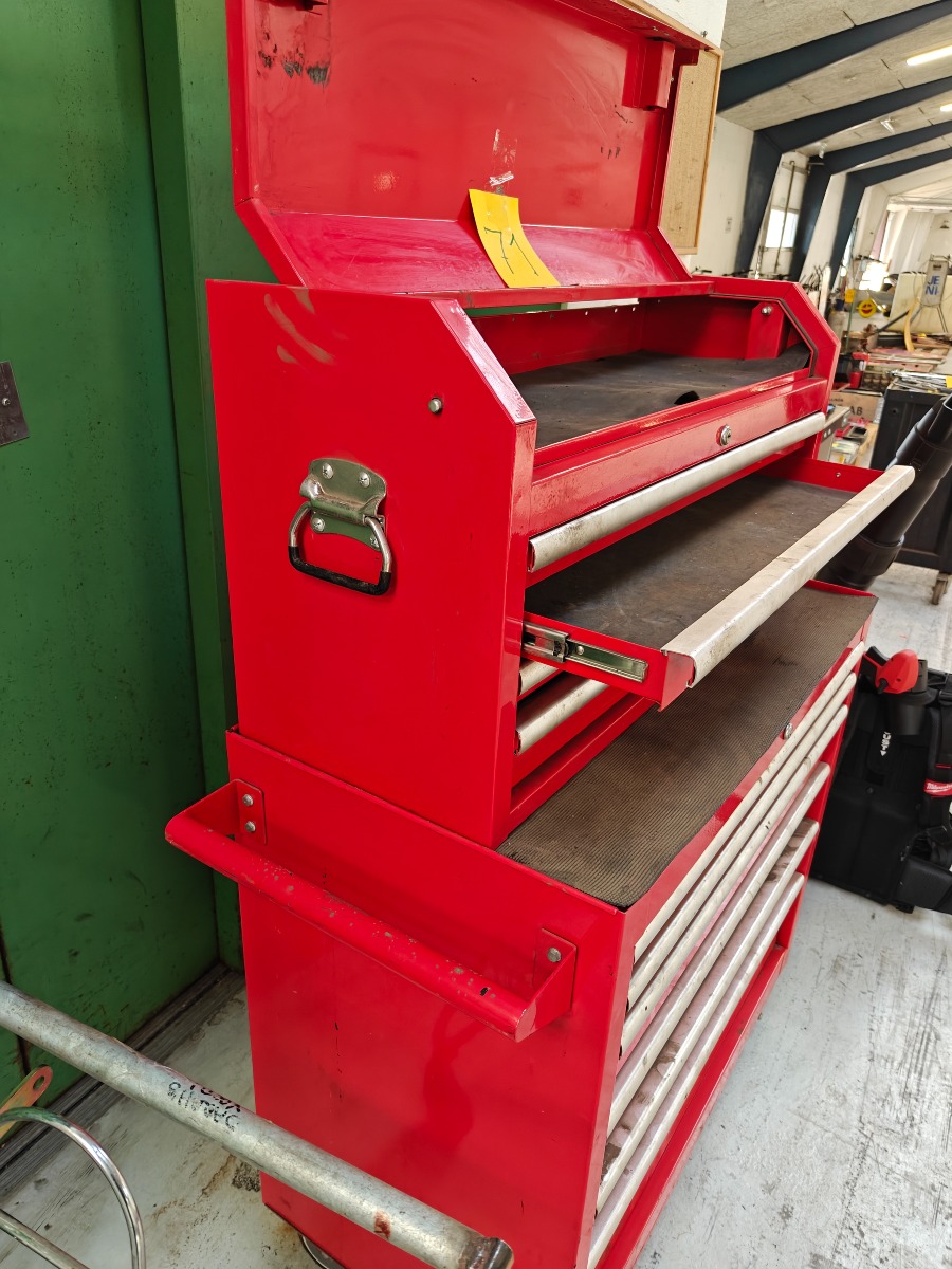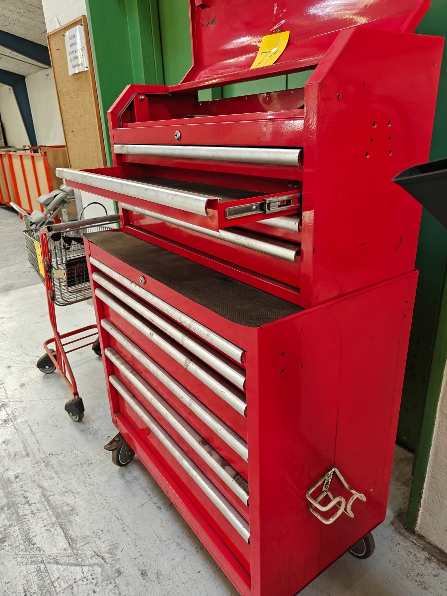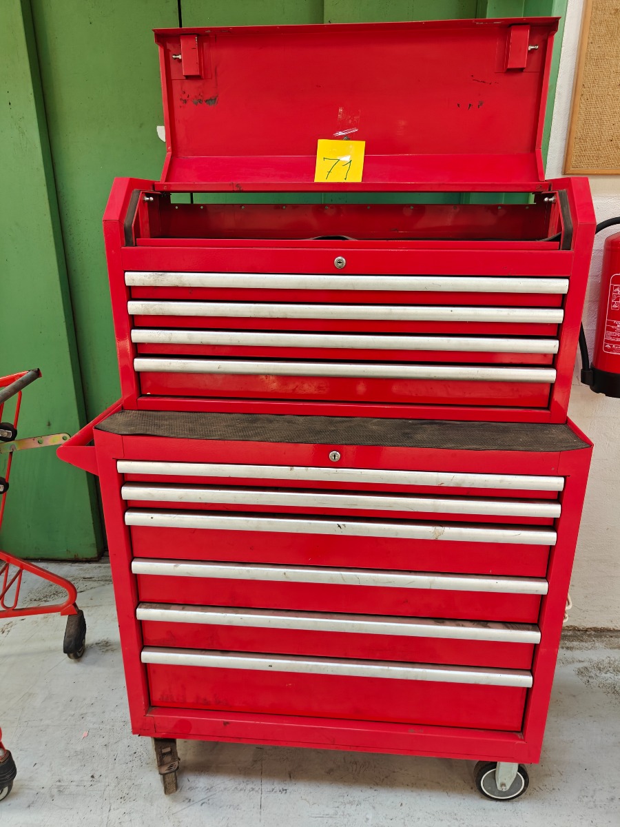 Værksteds / værktøjs vogn på hjul. Uden værktøj. Brugt.