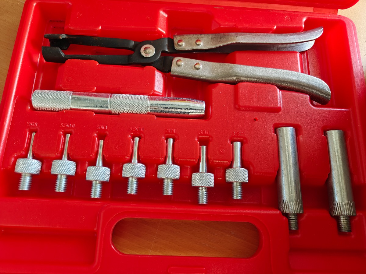 Ventilforseglings værktøj til fjernelse og montering af ventilstammepakninger, som ofte bruges i flerventilede motorer. Brugt.