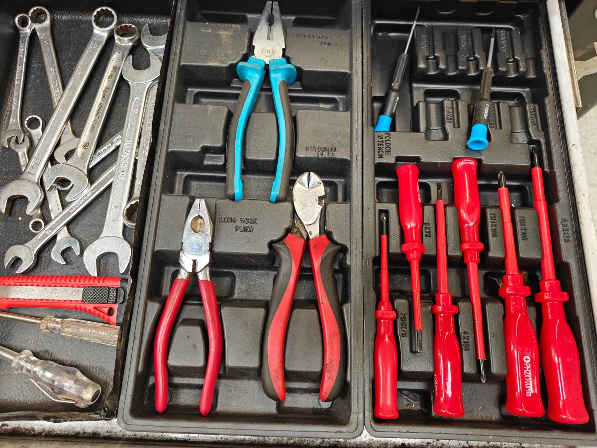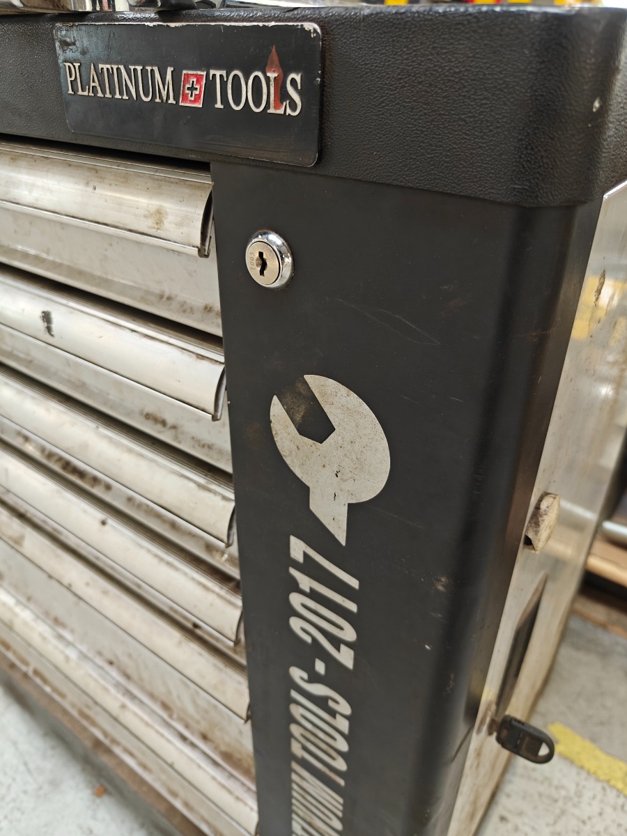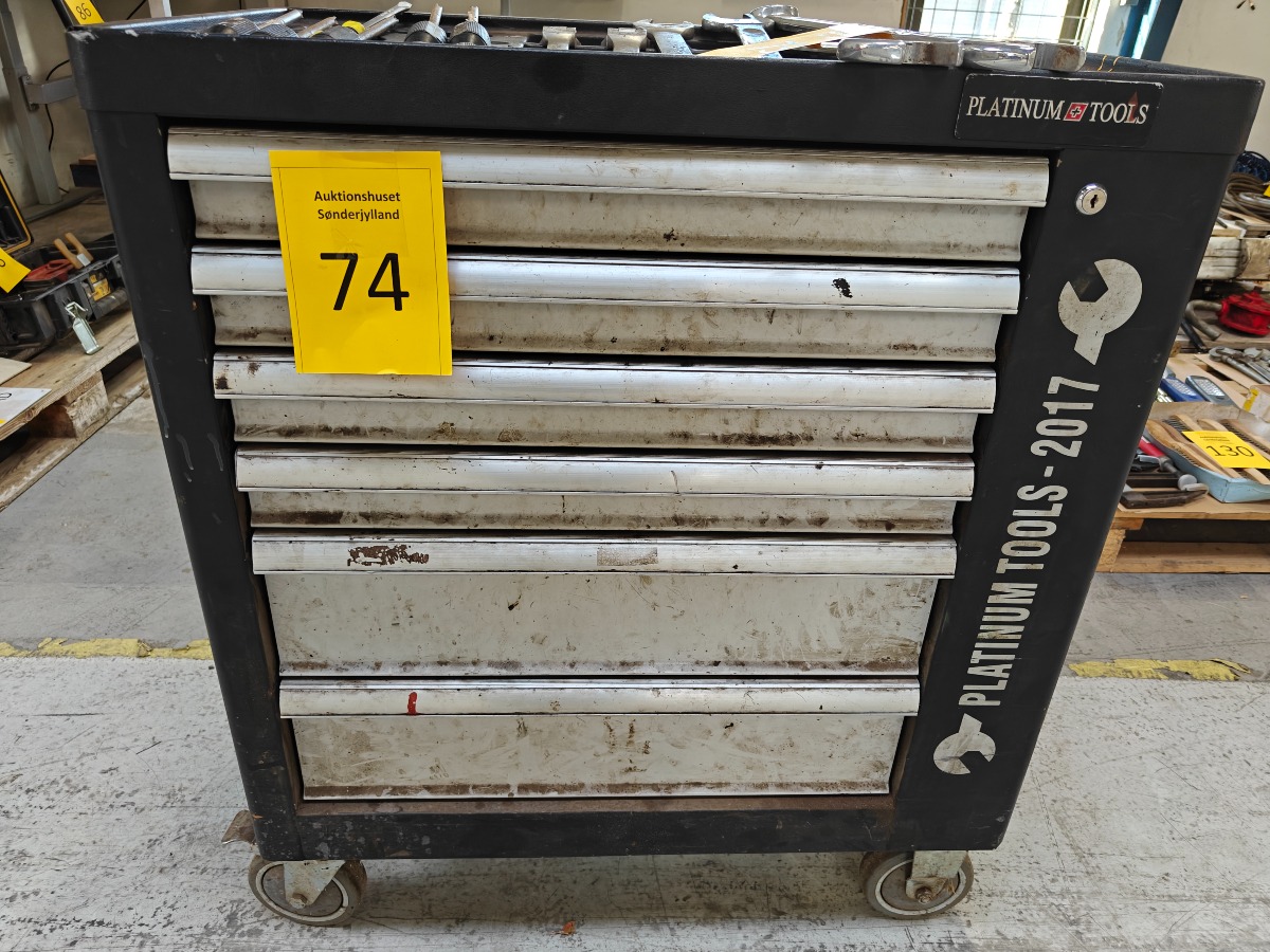 Plantinum Tools værkstedsvogn med diverse værktøj. Noget mere brugt end andet - Skufferne er ikke komplette. Både vogn og værktøj kunne trænge til rengøring.