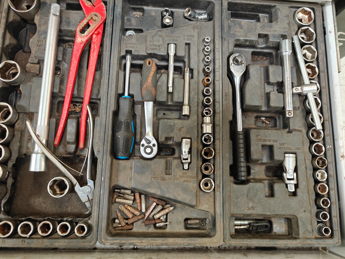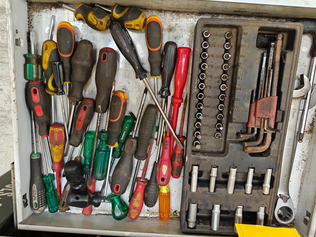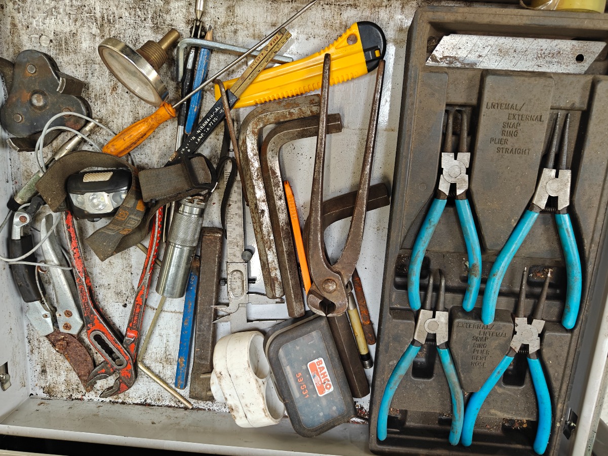 Plantinum Tools værkstedsvogn med diverse værktøj. Noget mere brugt end andet - Skufferne er ikke komplette. Både vogn og værktøj kunne trænge til rengøring.