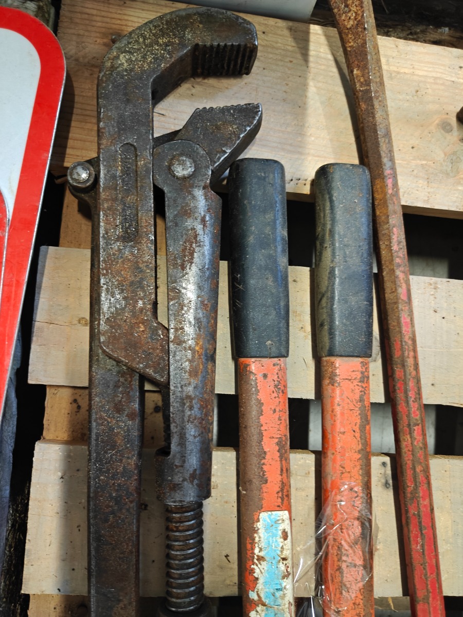 Værktøj - koben, hammer, boltsaks mm. Brugt.